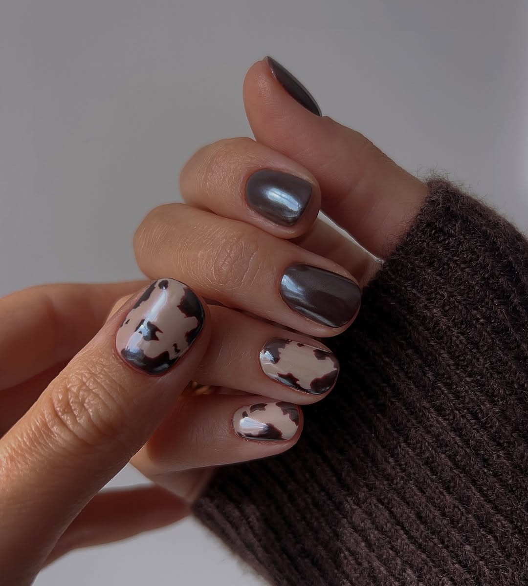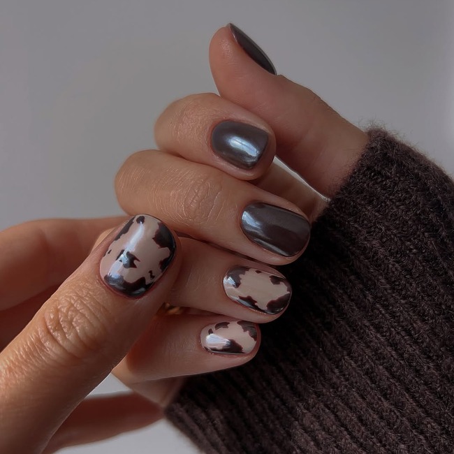 가을이면 어김없이 떠오르는 패턴, 바로 호피입니다. 단조로운 컬러가 많은 계절일수록 호피 네일은 손끝에 개성과 활기를 불어넣어 주죠. 열 손가락 가득 호피 무늬를 담아 대담하게 연출해도 멋스럽고, 한두 손가락에만 포인트로 넣으면 은근한 매력이 더해져 세련된 무드가 완성됩니다. 특히 블랙과 브라운 톤으로 표현한 호피 네일은 과하지 않으면서도 고급스러운 분위기를 자아내 가을 패션과 찰떡궁합이에요. 또한 호피 패턴을 프렌치 라인에 가볍게 더하면 단정함 속에 엣지가 살아나 더욱 감각적인 스타일을 연출할 수 있어요. 작은 면적만으로도 강렬한 존재감을 발휘하는 만큼, 올가을 손끝 스타일링의 확실한 포인트로 제격이죠.
