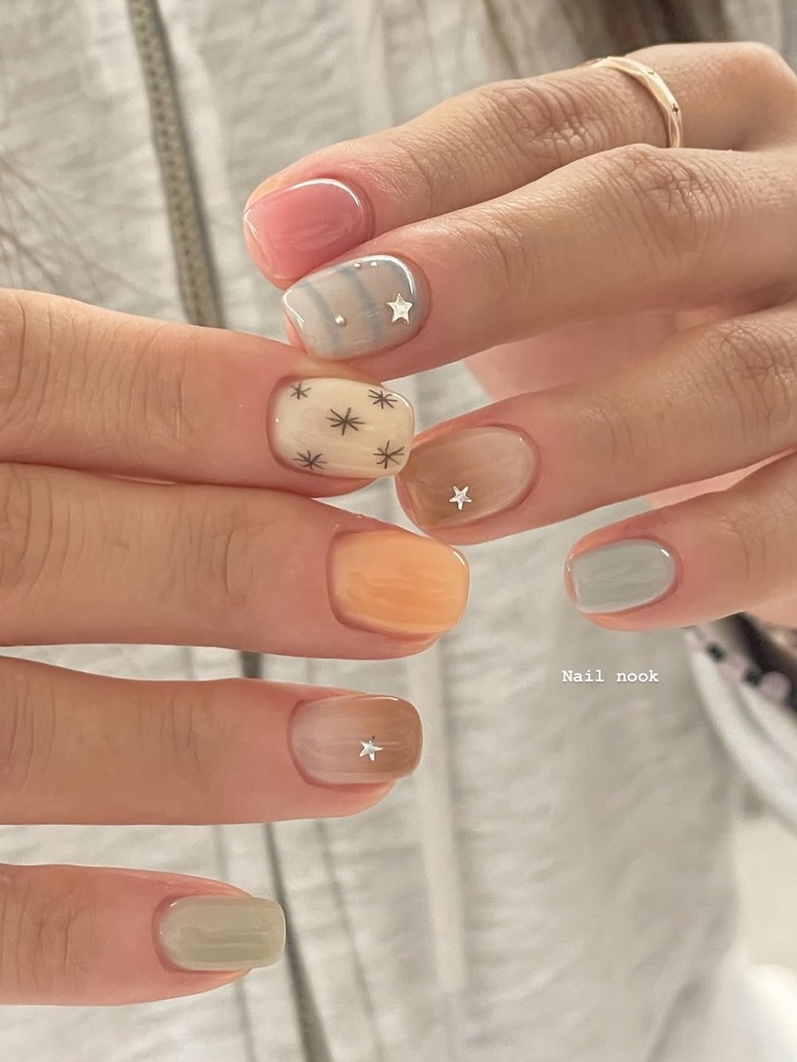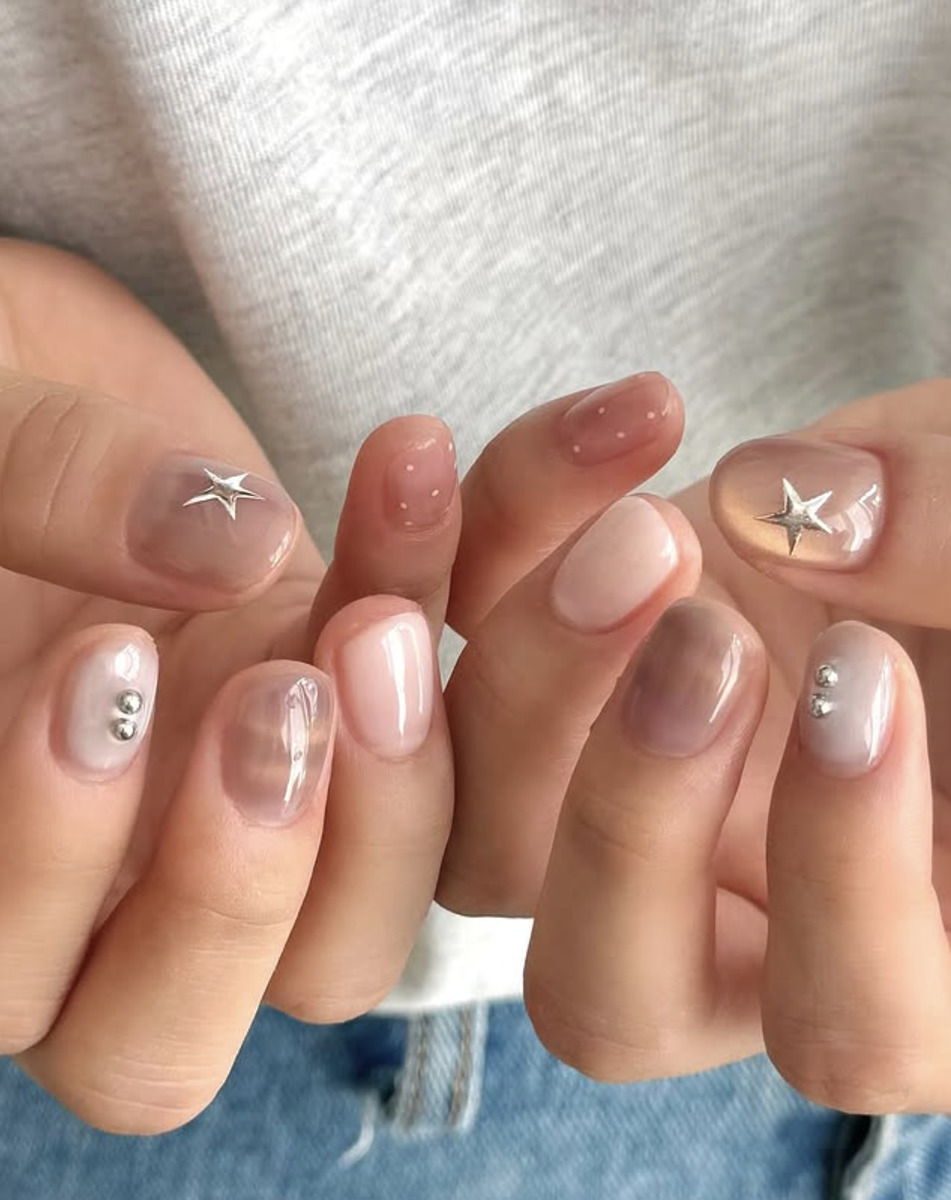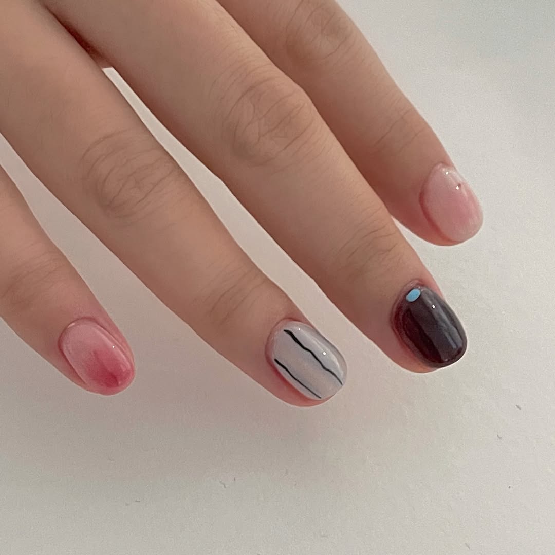 풀컬러가 다소 심심하게 느껴지거나 네일에 변화를 주고 싶다면, 디테일을 살짝 얹어보세요. 스프라이트 같은 작은 도트, 은은하게 번지는 치크 블러, 레트로 감성을 담은 패턴 등으로 말이죠. 작은 포인트만으로도 네일의 분위기가 달라집니다. 절제된 컬러 위에 더해지는 섬세한 디테일이 어우러져 이번 가을 빈티지 무드의 정수를 손끝에서 만나볼 수 있죠.
