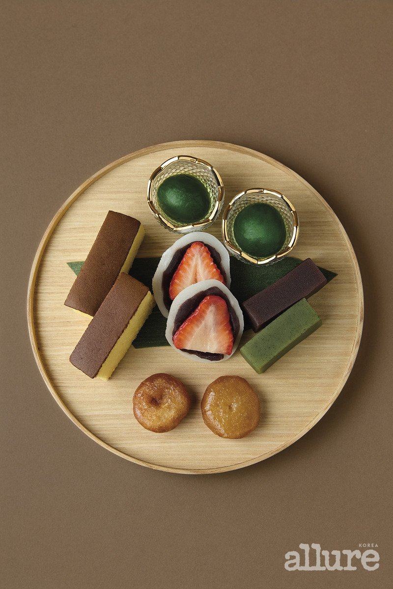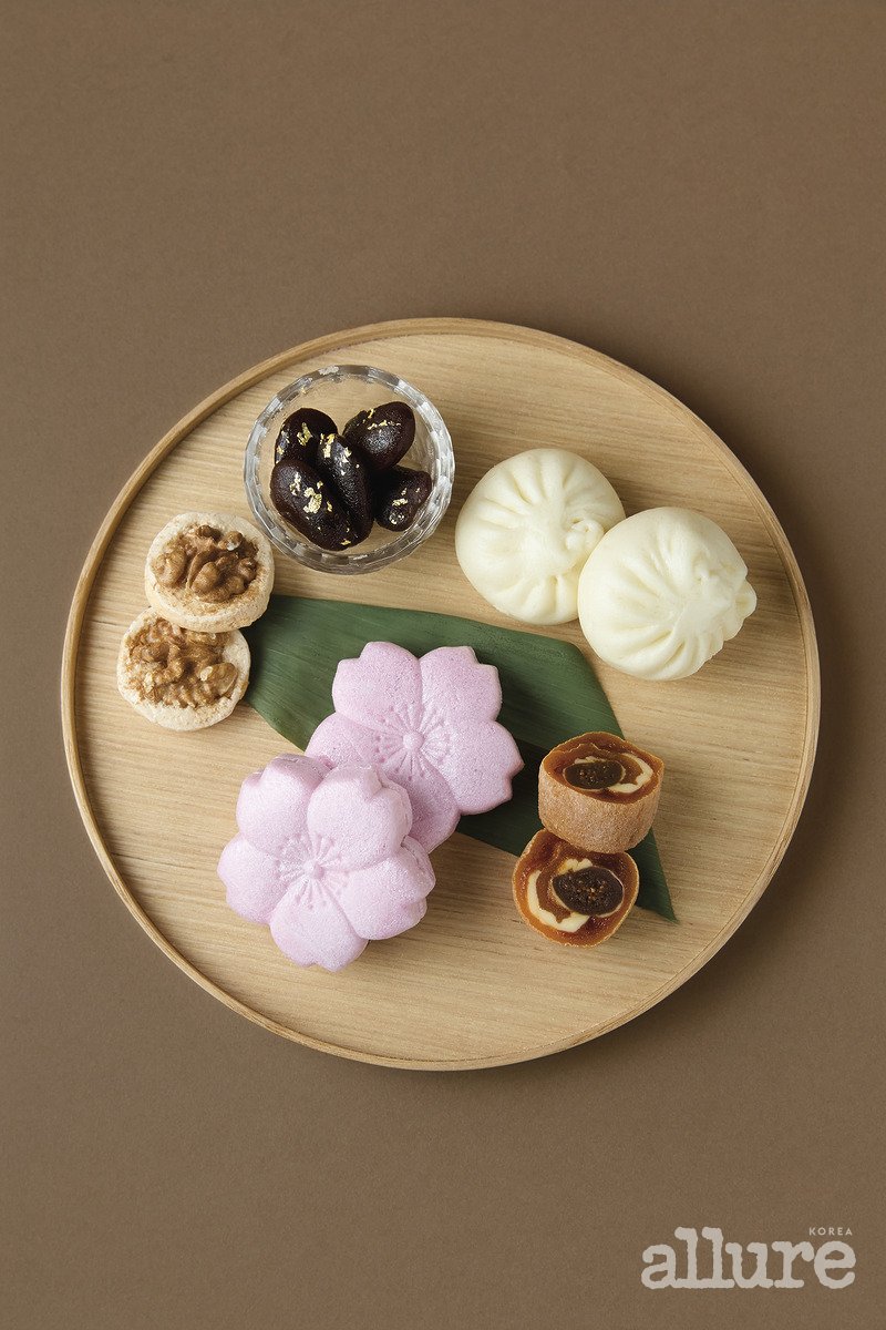 청매실, 검은콩 설탕 조림, 호두곶감말이, 주악 등 ‘헤리티지 애프터눈티 세트’의 디저트 12종은 쌍화차, 감잎차, 오미자차 같은 전통 차 5종과 곁들일 수 있다. 12만원 웨스틴 조선 서울.