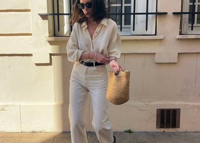 레이스 혹은 아일렛 펀칭 등 소재가 얇은 화이트 롱 원피스를 가지고 있다면 배우 윤승아처럼 힙한 레이어드 룩을 즐겨보시길. 패턴이 화려한 톱을 이너로 매치 한 후, 날렵한 블랙 앵클 슈즈를 매치해 로맨틱하면서도 어딘지 터프한 화이트 원피스 룩을 완성했다.