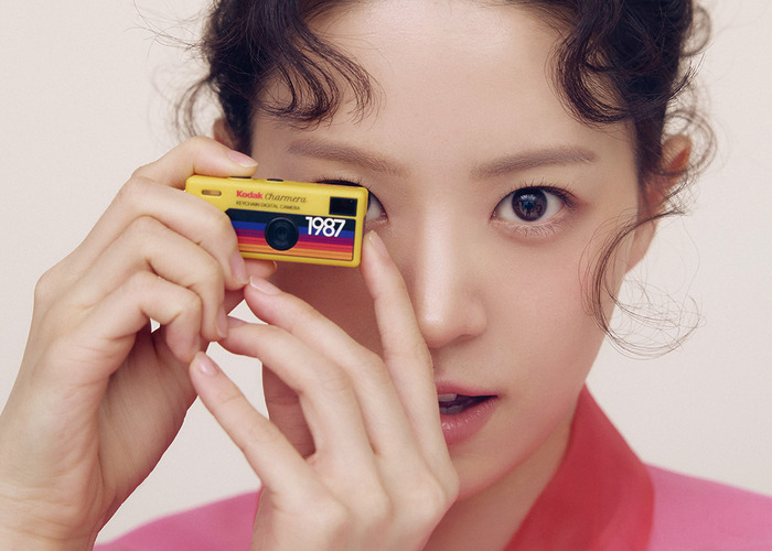 카리나의 장점인 흰 피부를 속광으로 블링하게 표현하고, 그 위에 눈두덩 쪽에는 쿨한 핑크를 전체적으로 바르고, 블러셔 역시 벚꽃처럼 따뜻하고 화사한 피치 핑크를 올렸어요. 진한 눈매가 강조되는 앞머리 룩에서는 눈 안쪽까지 검정색 아이라이너로 칠해 스모키 메이크업을 시도했는데요. 평소처럼 사랑스러운 블러셔를 하는 대신, 입술은 보송한 매트 립으로 표현해 시크한 룩을 완성했어요.