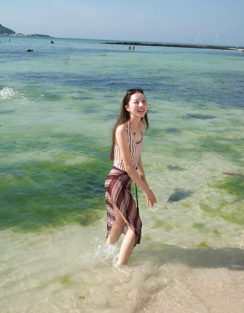 휴가지에서 커버업으로 미디스커트를 활용해도 좋아요. 인플루언서 린다는 스카이블루빛 비키니에 이와 보색을 이루는 레몬빛 바탕에 블랙 폴카 도트가 그려진 스커트를 함께 입어 여름의 청량함을 표현했죠. 반면 오눅은 전체적으로 통일된 컬러와 슬림하게 떨어지는 핏으로 몸을 한층 가늘고 길어 보이게 연출했습니다. 게다가 커버업으로 활용한 스커트가 랩업 디자인으로 슬릿이 길게 나있어 섹시함을 더해줘요.