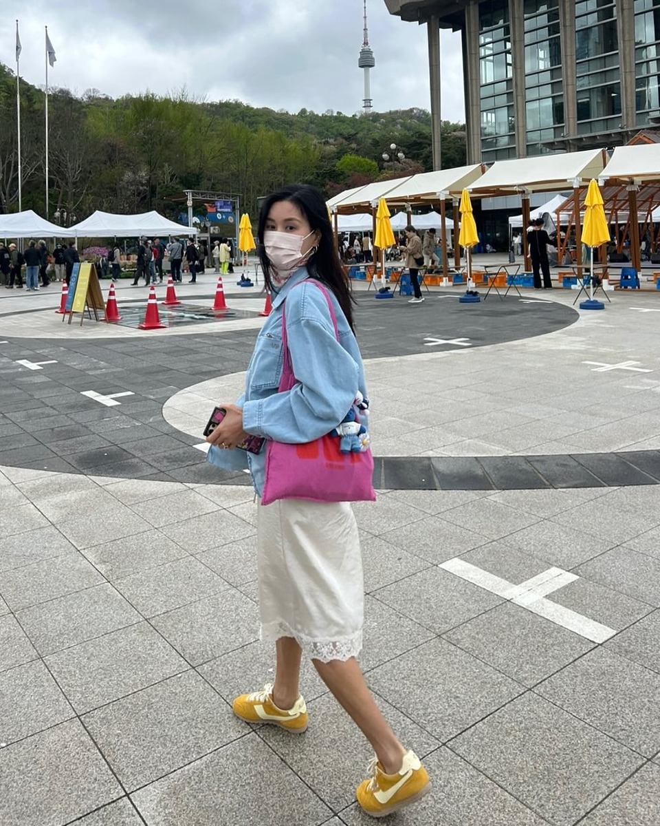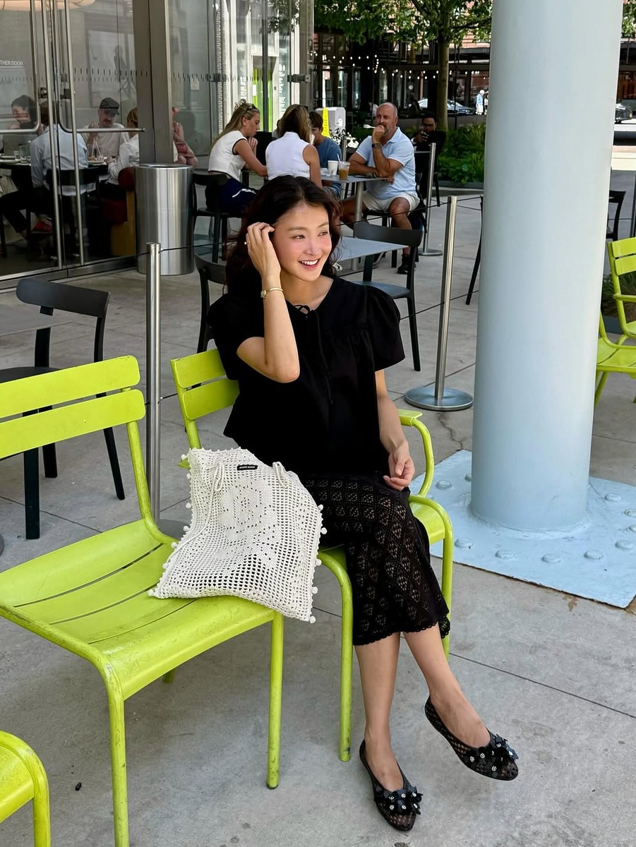 이시영은 전체적으로 니트로 짜여져 시원해보이면서도 시스루 효과로 섹시함까지 느껴지는 블랙 미디스커트를 활용해 우아한 나들이 룩을 보여줬습니다.