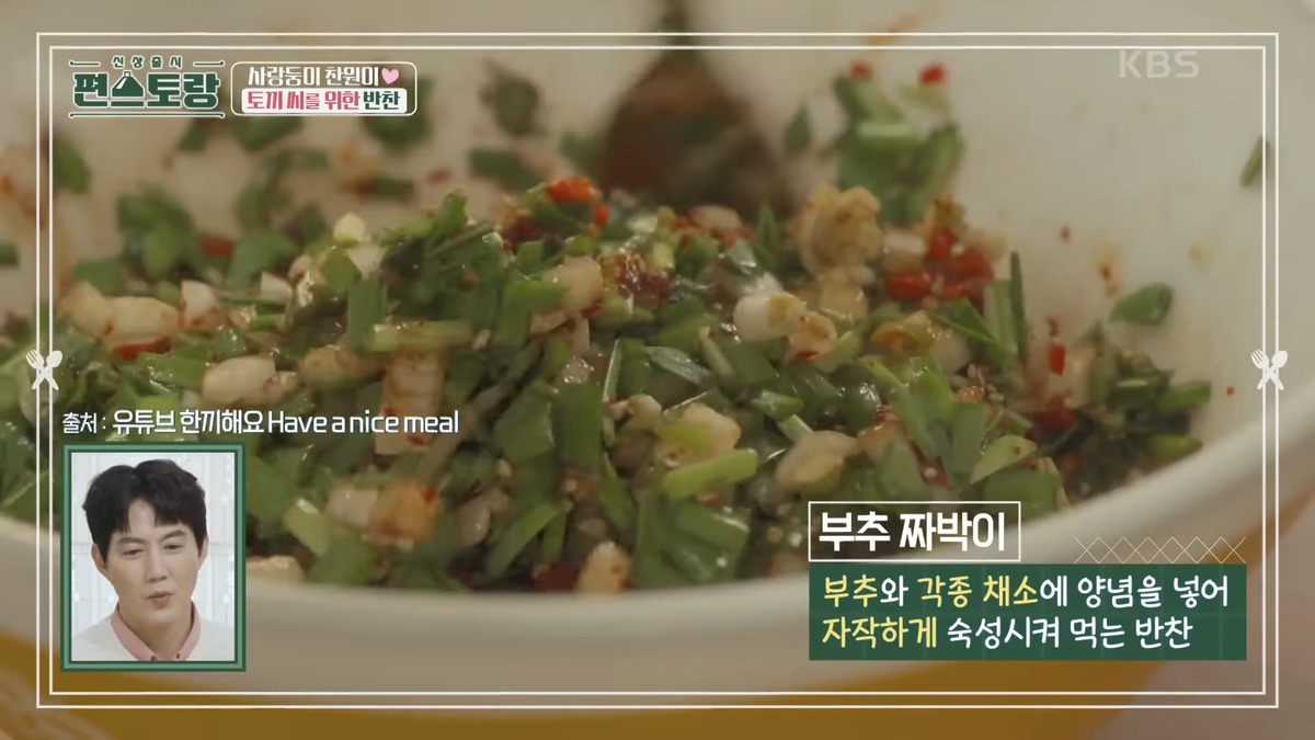 요즘처럼 더워서 식욕이 떨어질 때, 입맛도 돋워주고 두부로 단백질도 보충할 수 있는 건강 레시피! 게다가 게스트로 출연한 윤계상이 맛보고는 ‘진실의 미간’을 보였을 정도죠. 아삭한 오이와 부드러운 연두부의 식감과 소스의 단짠조합이 심플하지만 아주 만족스러운 한 그릇입니다.