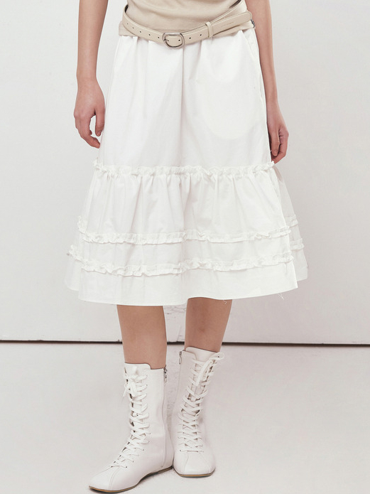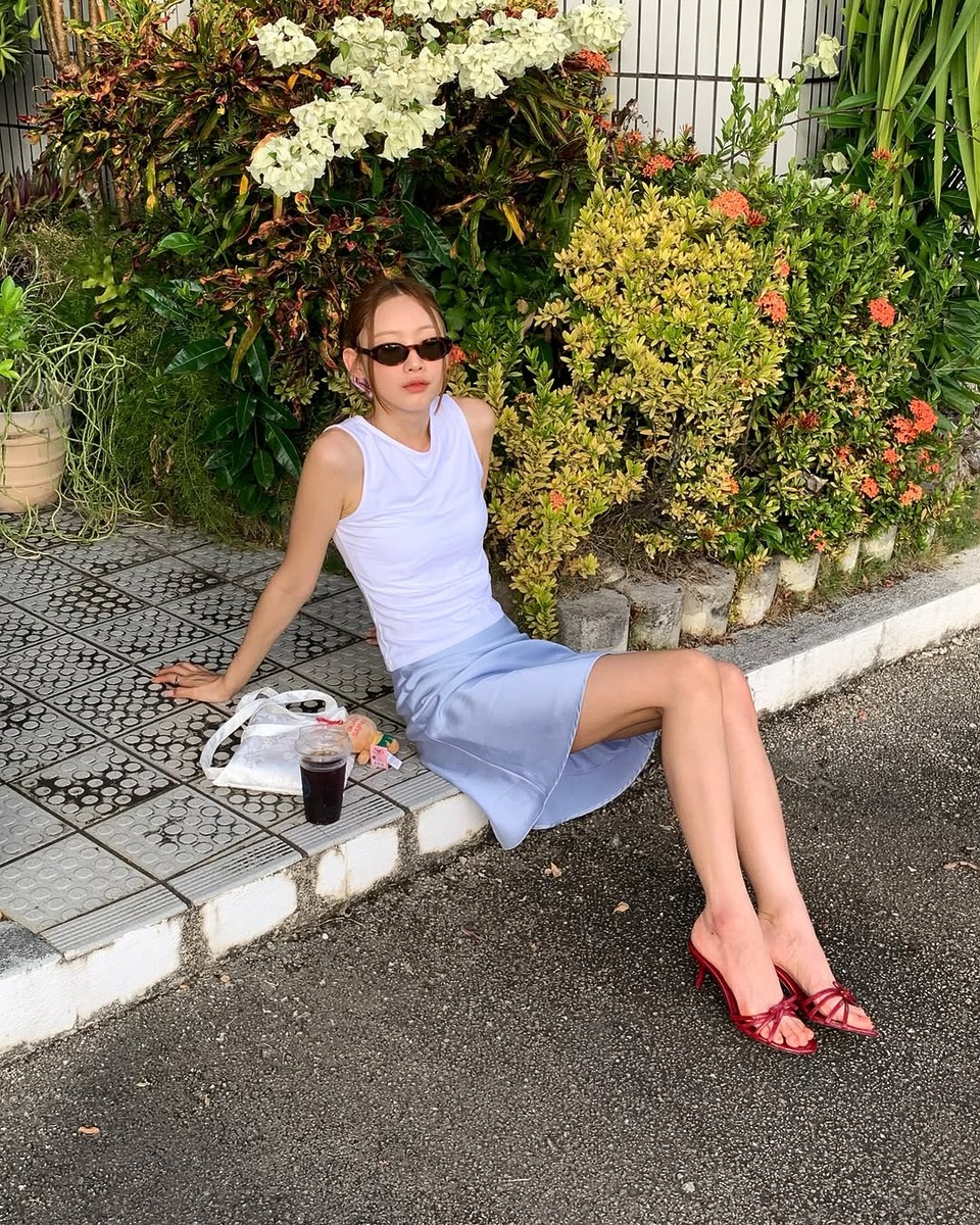 미디스커트는 적당한 길이감으로 하체를 커버해 주는 대신, 상의로 시선을 끌기 좋은 아이템이에요. 이럴 땐 톱을 시원하게 연출해 보면 어떨까요? 가장 기본이 되는 화이트 슬리브리스는 실패 없는 선택이랍니다! 만약 상의가 너무 심플한 느낌이라면 실크 소재의 미디스커트를 포인트로 매치하세요. 한 끗 차이로 고급스러운 무드를 완성할 수 있습니다. 레이처럼 도트 패턴의 어깨 끈이 얇은 슬리브리스와 프릴 디테일이 가미된 화이트 미디스커트도 좋아요. 이 조합은 사랑스러운 무드를 내기 제격이죠! 좀 더 유니크한 스타일을 원한다면, 차정원처럼 컬러 슬리브리스를 레이어드 하는 걸 추천합니다. 센스 있는 여름 코디가 될 거예요.