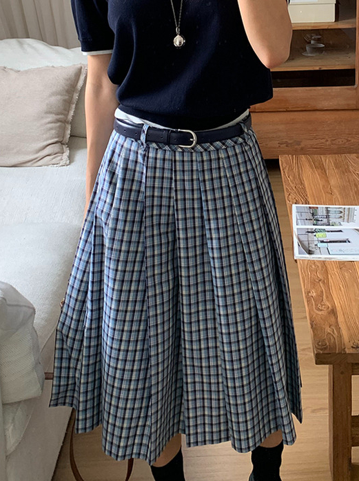 오버 사이즈 티셔츠 + 체크 미디스커트