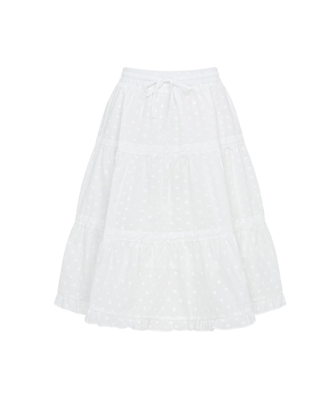 원숄더 톱 + 레이스 미디스커트
