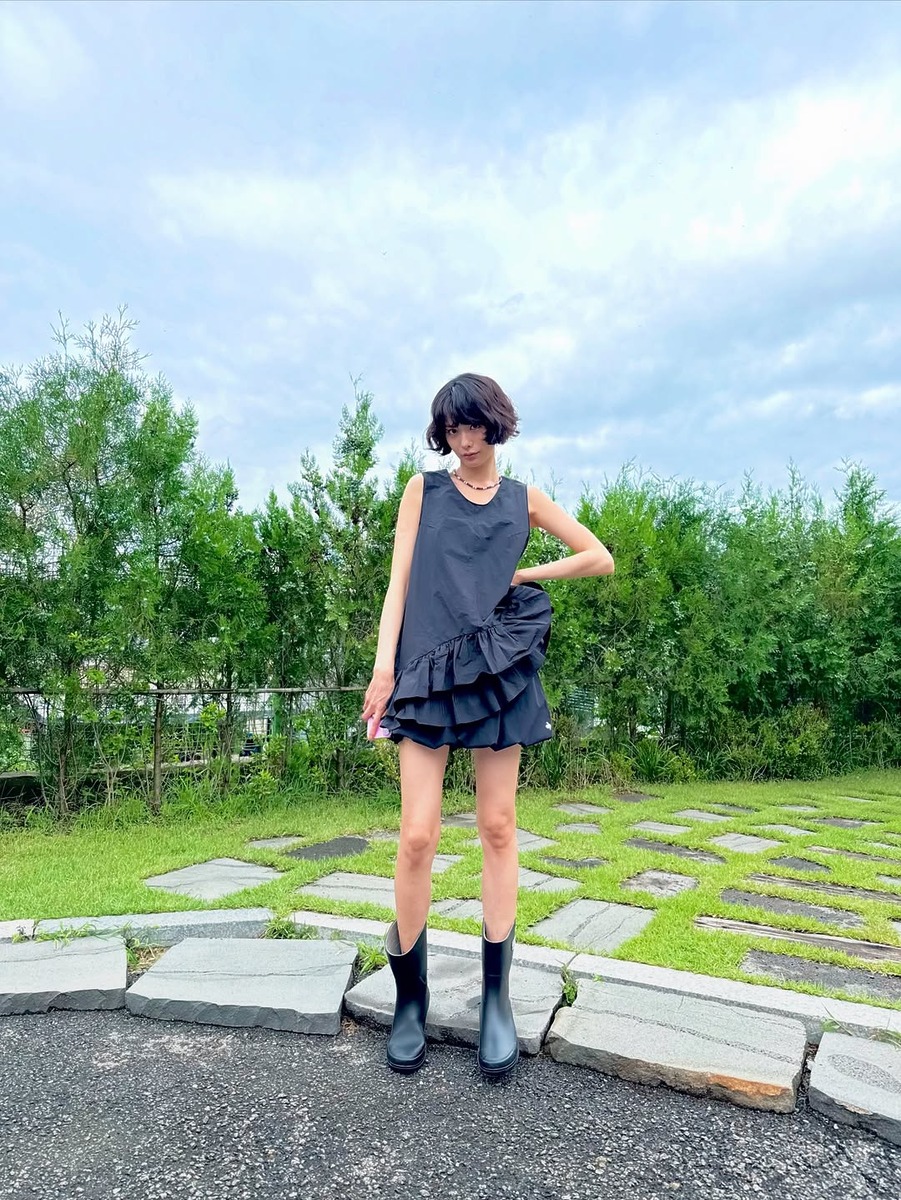 비 오는 날, 뭐 입을지 막막하다면 러플 장식 블랙 원피스를 추천해요. 러플 디테일 덕분에 우중충한 날씨에도 룩이 처지지 않고, 통기성이 좋아 덥고 습한 날에 딱이죠. 여기에, 레인부츠를 더하면 실용적이고 사랑스러운 장마 패션 완성! 차분한 블랙 컬러 덕분에 러플 디테일이 부담스럽지 않게 느껴진다는 것도 장점입니다.
