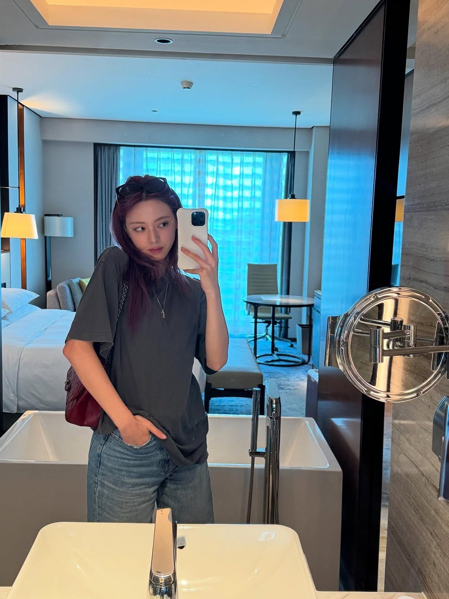 무지 티셔츠 같은 기본 아이템일수록 핏이 중요하다는 사실, 알고 계셨나요? 티셔츠를 한 치수 크게 입는 것만으로도 자유로움이 묻어나요. 유나는 그레이 박시한 티셔츠에 워싱이 살아있는 러프한 데님과 부츠를 더해 빈티지 무드를 완성했어요. 여기에 빨간 숄더백으로 컬러 포인트를 더한 것이 이 룩의 핵심. 우아한 디자인의 백 덕분에 전체적인 룩이 후줄근해 보이지 않죠.