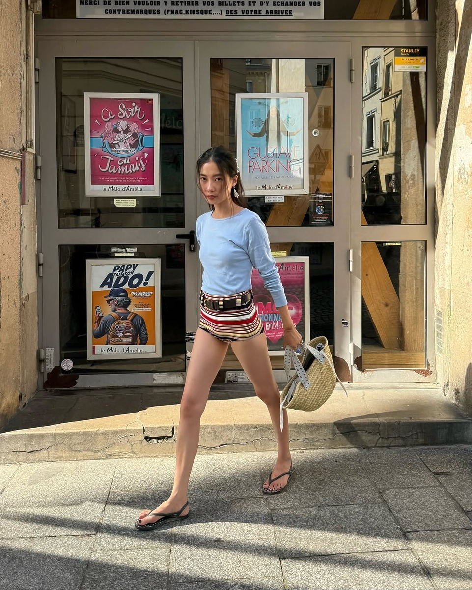 티셔츠와 쇼츠만 입었을 뿐인데 왜 이렇게 세련돼 보일까요? 답은 ‘밸런스’에 있어요. 상의는 심플하게, 하의는 패턴으로 존재감을 살려야 해요. 박민주는 멀티 컬러 스트라이프 쇼츠로 활력을 더했고, 리즈 블럿스타인은 빈티지한 패턴의 마이크로 쇼츠로 포인트를 더했어요. 두 사람 모두 무채색 티셔츠가 아닌 컬러 티셔츠를 선택해 더욱 생동감 있어 보여요.