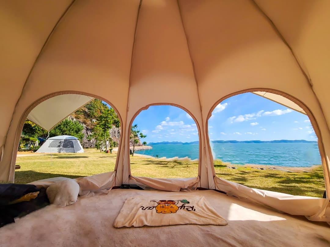 한려해상국립공원 안에 있는 이 야영장은 자연 그대로를 누릴 수 있는 곳. 앞에는 몽돌해변, 뒤에는 숲길이 있어 아침저녁 산책 코스로 완벽해요. 카라반, 오토캠핑, 일반 캠핑사이트까지 다양하게 갖춰져 있어 입맛대로 선택 가능하답니다. 예약은 국립공원공단 예약시스템에서만 가능하니 참고하세요.