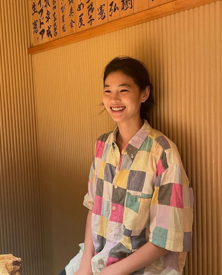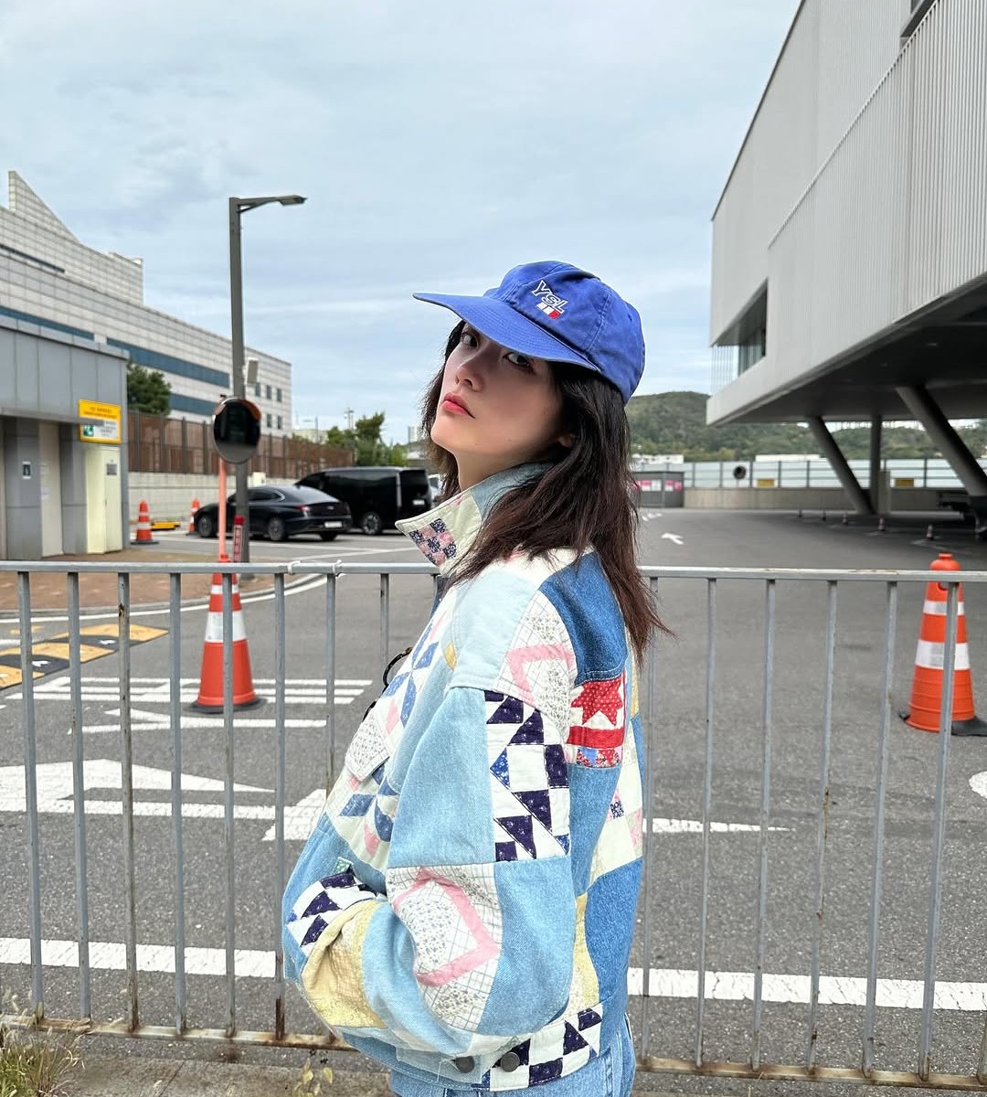 너무 튀지 않으면서도 뻔하지 않은 데일리룩을 찾는다면? 이유미처럼 패치워크 재킷에 연청 데님 팬츠, 그리고 살짝 상반된 컬러의 핑크 스니커즈로 균형을 맞춰보세요. 전체적으로는 차분한 색조합이지만, 패치워크 특유의 컬러 믹스가 룩에 재미를 더해줘요.
