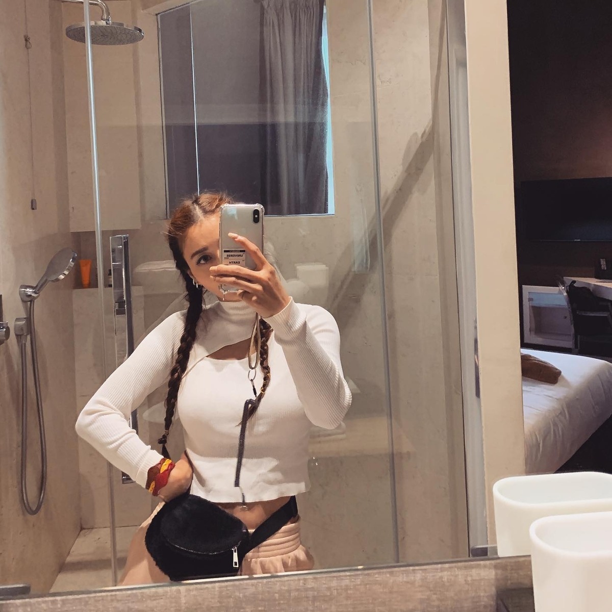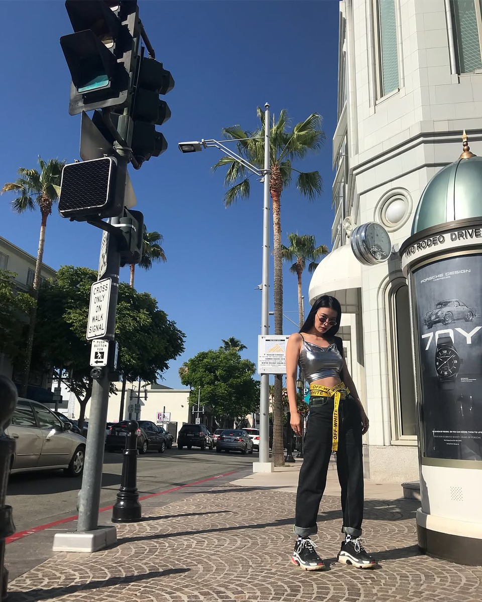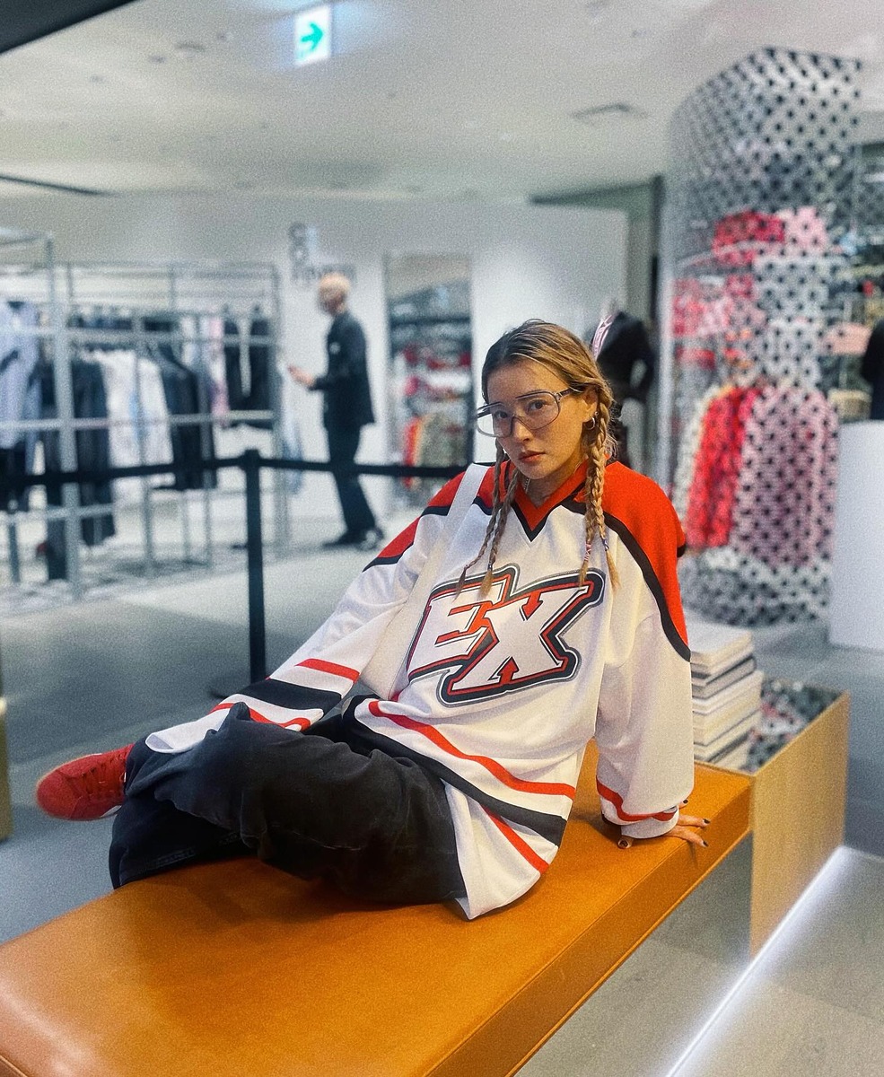 <월드 오브 스우파> 같은 걸크러시 패션을 즐기는 황보. 슬리브리스나 컷아웃 디테일의 ‘쫄티’에 힙합 바지를 입으면 섹시하면서도 멋있는 스우파 분위기가 나죠. 요즘 유행하는 양갈래 땋은 머리도 잘 어울리죠?