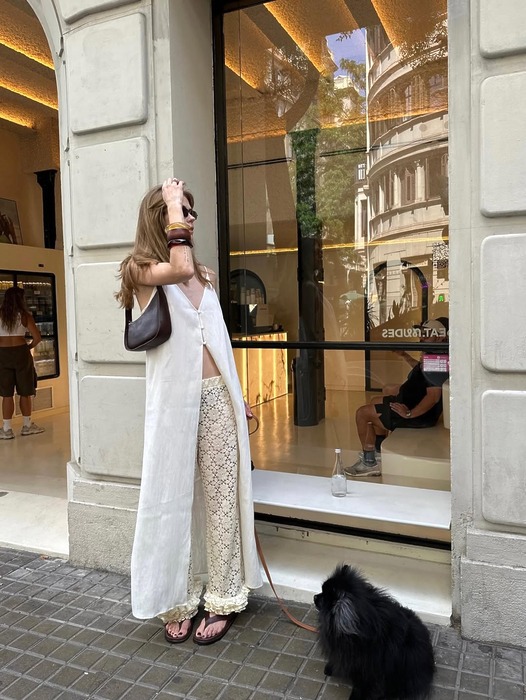 가장 먼저, 에밀리아 실버그(@emiliasilberg)처럼 머리부터 발끝까지 전신 레이스로 고혹적인 매력을 드러낼 수 있죠. 신발, 가방, 주얼리도 없지만 이 자체만으로도 존재감이 충분하게 느껴지죠. 촘촘한 레이스 자체가 시선을 복잡하게 만들 수 있기 때문에 액세서리를 최소화해 오로지 레이스에만 강조를 두는 것이 좋은 선택이겠네요. 만삭에도 다채로운 패션을 보여주고 있는 안나 윙크(@annawinck)의 레이스 패션은 어떤가요? 무릎을 덮는 카프리 팬츠에 플랫, 스웨이드 빅백까지 더해져 결코 평범하지 않은 룩을 증명했죠.