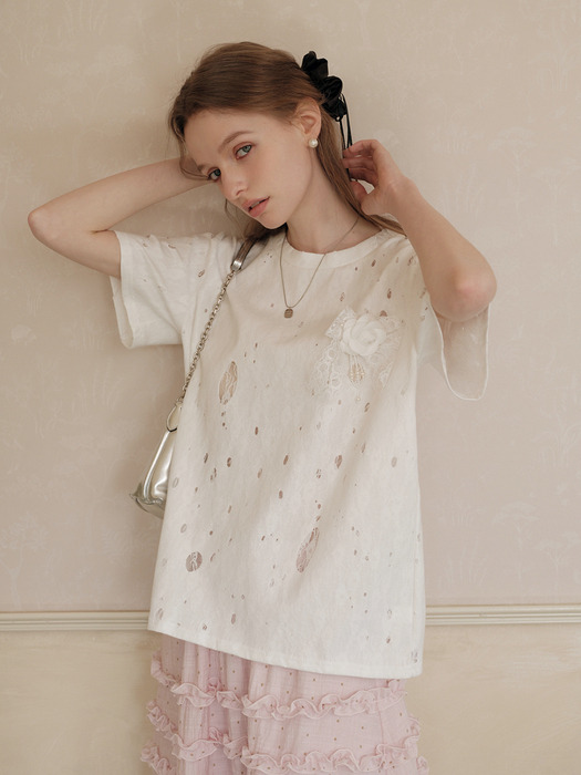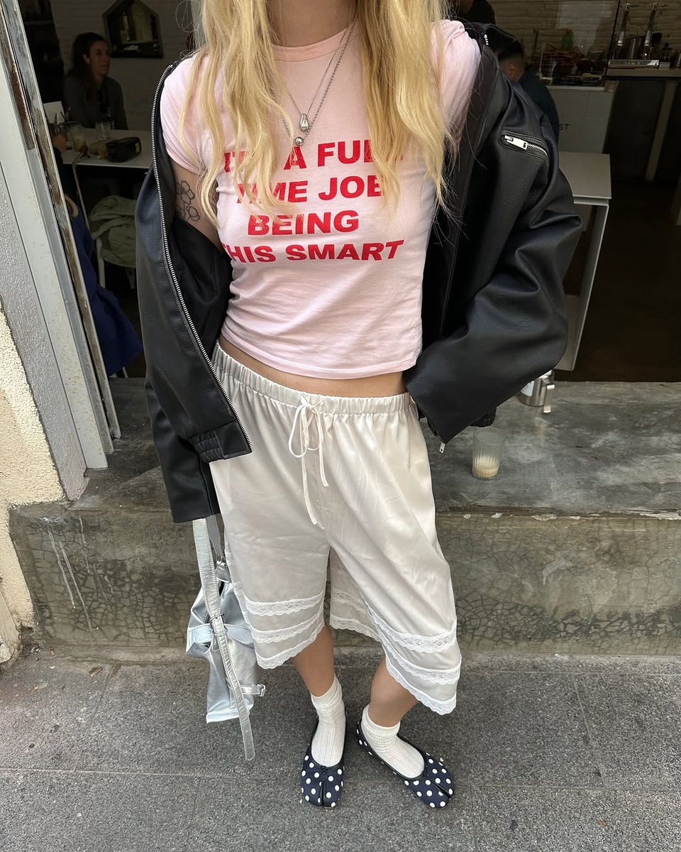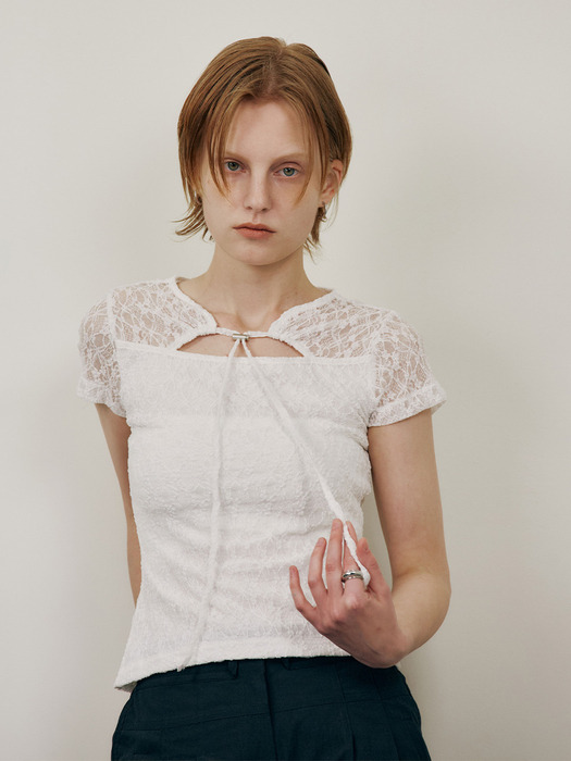 레이스는 아주 작은 요소로만 적용해도 금방 티가 납니다. 브라렛, 팬츠, 치마 어디에나 레이스를 얹을 수 있지만 그만큼 존재감이 뛰어나기 때문에 옷을 고를 때 신중해야 합니다. 만약 전신 레이스는 커녕 레이스가 작게 들어간 미니 드레스도 겁이 난다면 차라리 시도하지 마세요! 실패 확률을 줄이려면 많이 보고 여러 아이템을 입어보는 수고를 곁들여야 하는데 심지어 내 추구미도 아니라면 굳이 그럴 필요까지요. 대신 레이스 티셔츠라면 로맨틱한 레이스를 겁 없이 즐길 수 있는 아이템이죠.