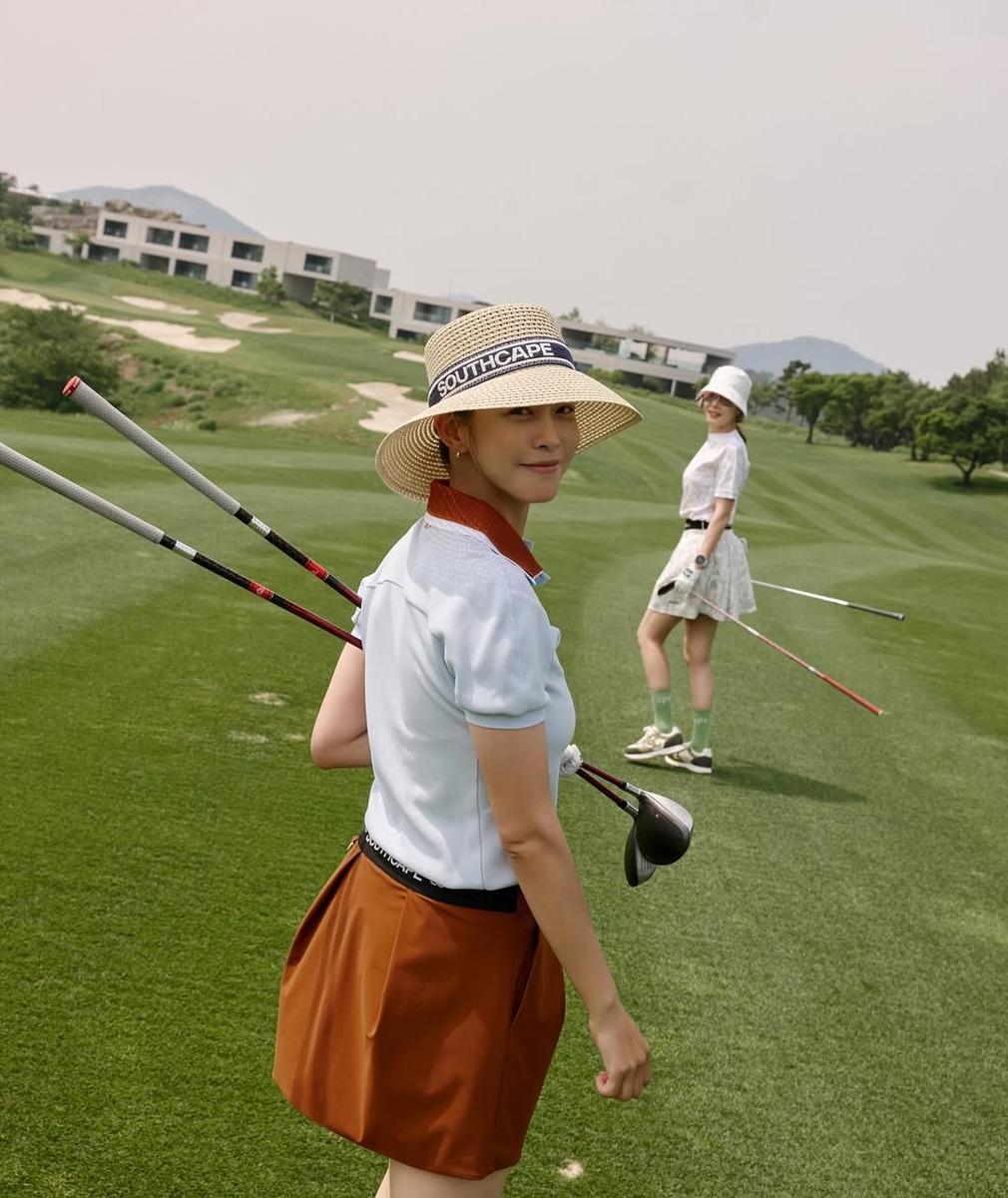 무더위에도 불구하고 골프에 대한 열정을 놓지 않은 스타들도 있어요. 배우 한지혜는 화이트와 네이비로 군더더기 없이 모던하고 클래식한 골프 스타일을 연출했어요. 배우 경수진은 화이트와 브라운 컬러를 믹스한 스타일로 초록 잔디밭 위에서 시선을 모았고요. 두 배우 모두 뜨거운 열기와 자외선을 차단해 줄 창이 큰 라피아 소재 모자를 착용했네요!