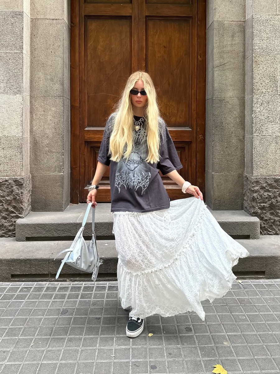 메시 걸을 대표하는 셀럽을 꼽자면 바로 모델 아이리스 로(Iris Law)에요. 배우 주드 로의 딸인 그녀는 MZ들의 스타일 아이콘이기도 하죠. 그녀의 대모는 바로 케이트 모스. 자유분방하고 개성 넘치는 아리리스 로의 스타일은 그녀의 대모인 케이트 모스의 영향일까요?