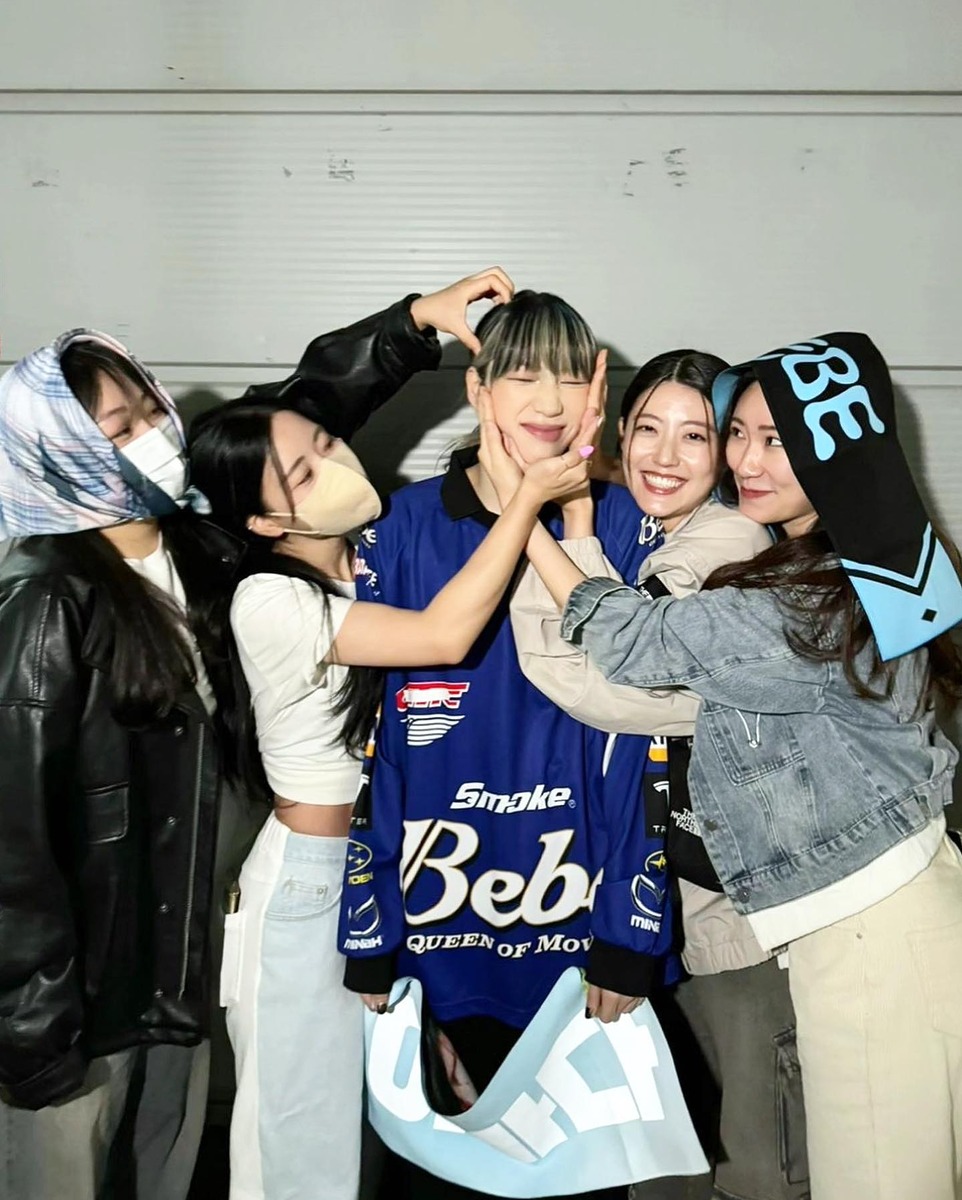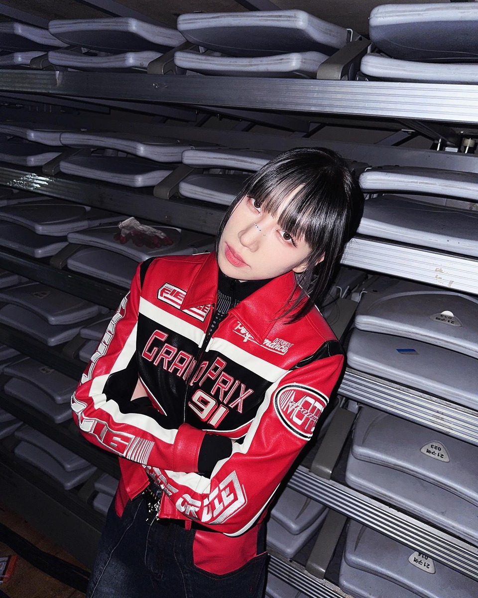 베베의 수장, 댄서 바다 역시 레이싱 패션이 잘 어울려요. 채도 높은 레드와 블루 컬러의 바이커 재킷과 셔츠는 그녀의 하얀 피부를 더욱 돋보이게 해줍니다. 짧은 시간 안에 많은 이들의 시선을 사로잡아야 하는 댄서라는 직업에 걸맞게 대담하고 강렬한 패션을 선보여야 하는 그녀에게 레이싱 패션은 그야말로 찰떡!