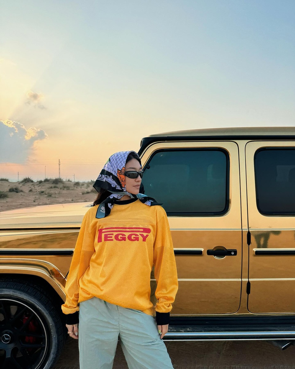 제니는 아직 F1에 모습을 드러내진 않았지만 지난 코첼라에서 누구보다 레이싱 패션에 진심인 모습으로 등장했죠. 볼드한 바이커 재킷과 이를 받아주는 힘을 뺀 그레이 후드와 스웨트 팬츠, 웨스턴 부츠에 카우 패턴의 스카프로 페스티벌 무드를 살렸습니다. F1 영화가 흥행하기도 전에 미리 레이싱 패션을 선점하다니, 역시 제니는 제니네요.