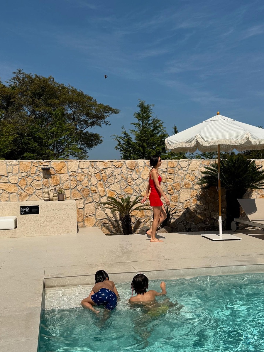 김나영의 인스타그램에 올라온, 남부 유럽의 럭셔리한 휴양지 부럽지 않은 이 숙소는? 제주도 서귀포에 위치한 샴록은 400평 규모의 드넓은 풀빌라 독채로 아주 프라이빗한 휴식을 보내기 적절합니다. 김나영은 6월에 방문했으며 4월에 SNS에 보고 점찍어 놨다고 하네요. 편백나무 산책로와 야외 바비큐 공간도 마련되어 있고 마트도 숙소에서 도보로 4분 정도 거리에 위치해 있어 여러모로 편리하게 이용할 수 있습니다.