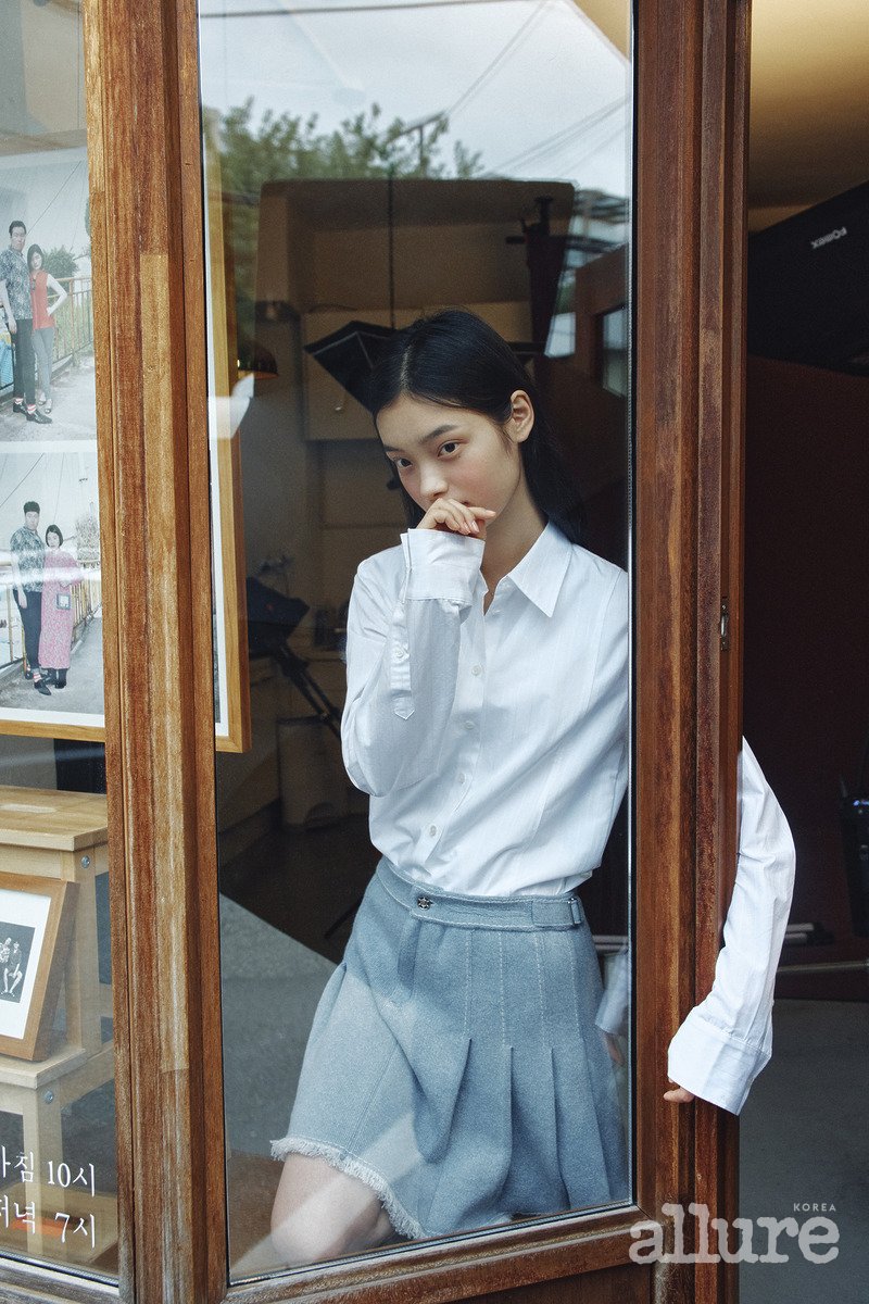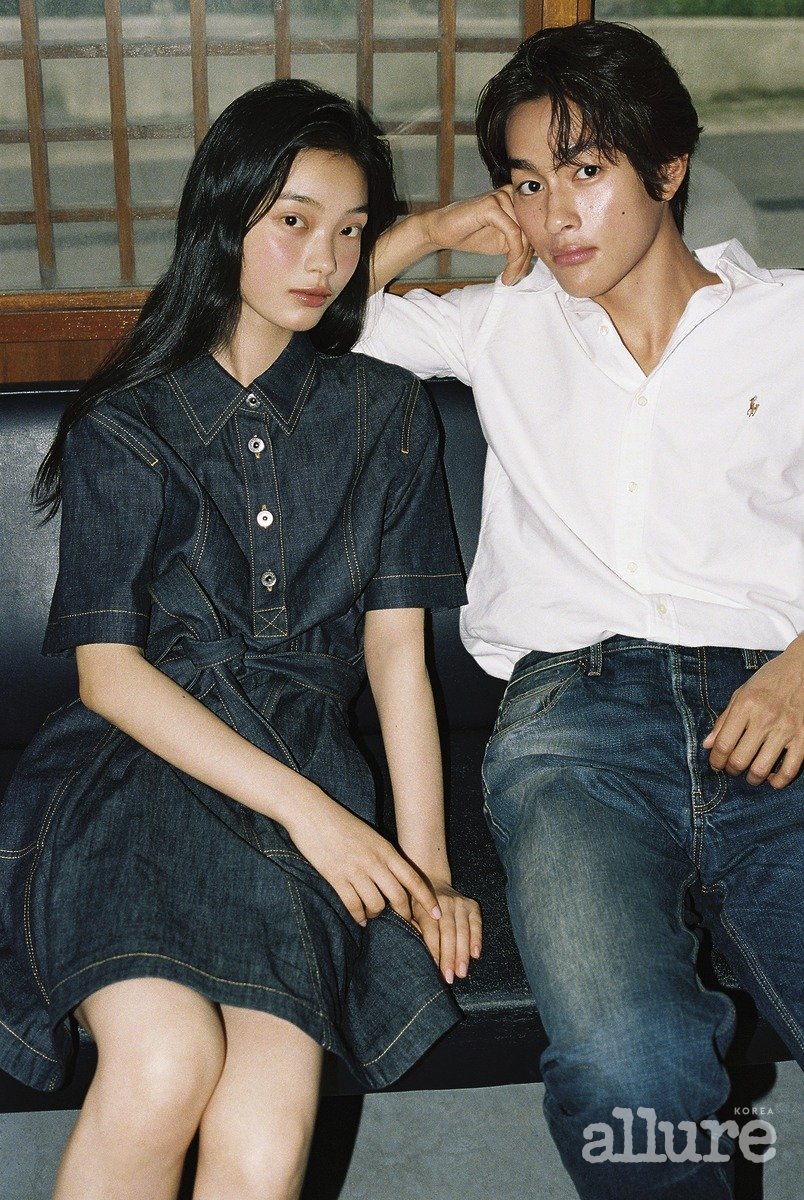 천쯔가 입은 데님 원피스는 보테가 베네타. 태준이 입은 화이트 셔츠는 폴로 랄프 로렌(Polo Ralph Lauren). 데님은 프라다(Prada).