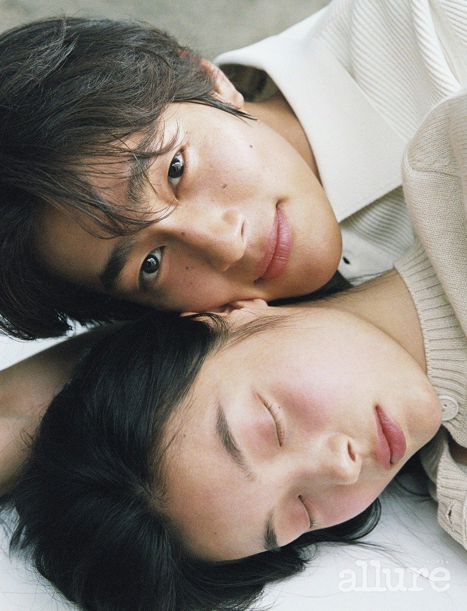 천쯔가 입은 플라워 디테일의 카디건은 배리. 태준의 화이트 니트 톱은 렉토(Recto).
