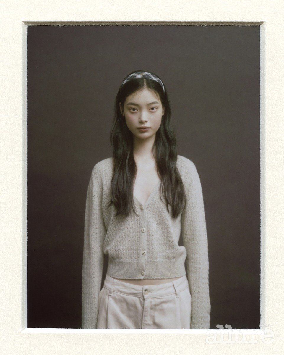 헤어밴드는 셀린느(Celine). 캐시미어 카디건은 배리. 팬츠는 메종 키츠네(브라운 니트 톱은 렉토. Maison Kitsune).