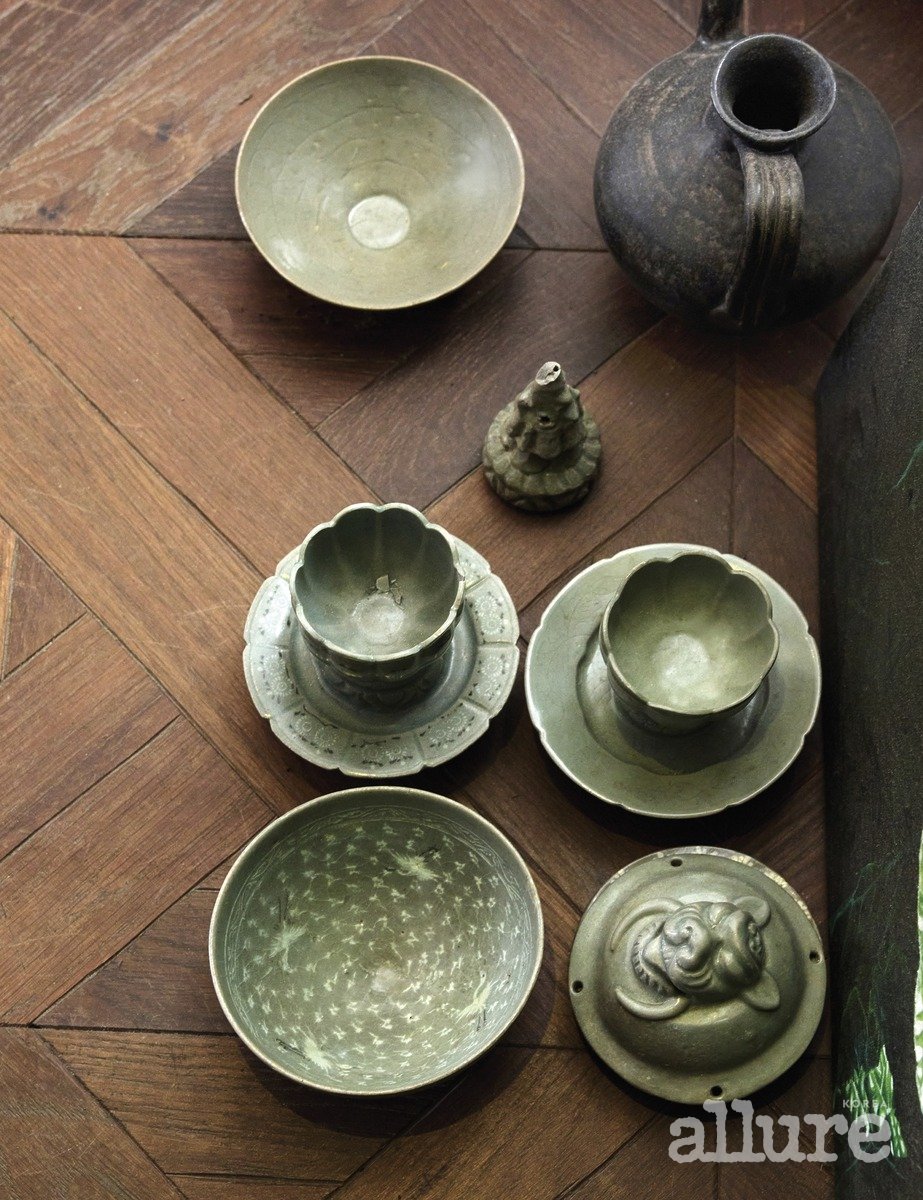 청자의 역사만큼 모양과 형태도 다양하다. 우리 선조는 청자로 장구, 향로, 주전자, 피리, 베개, 화분 등 다양한 종류의 기물을 만들었다. 지금 내 컬렉션은 청자의 모든 기종, 기법, 색의 스펙트럼을 아우른다. 이를 목표로 지금까지 수집을 진행했다. 돈과 시간이 생기면 작품을 찾으러 뛰어다녔다. 8년간 사진첩에 품고 다니던 작품이 우연히 내게 오기도 하고, 존경하는 분이 내어주는 등 원하는 작품을 찾았을 때 희열은 이루 말할 수 없었다. 작품마다 나와 만나기까지의 여정이 각별하다.