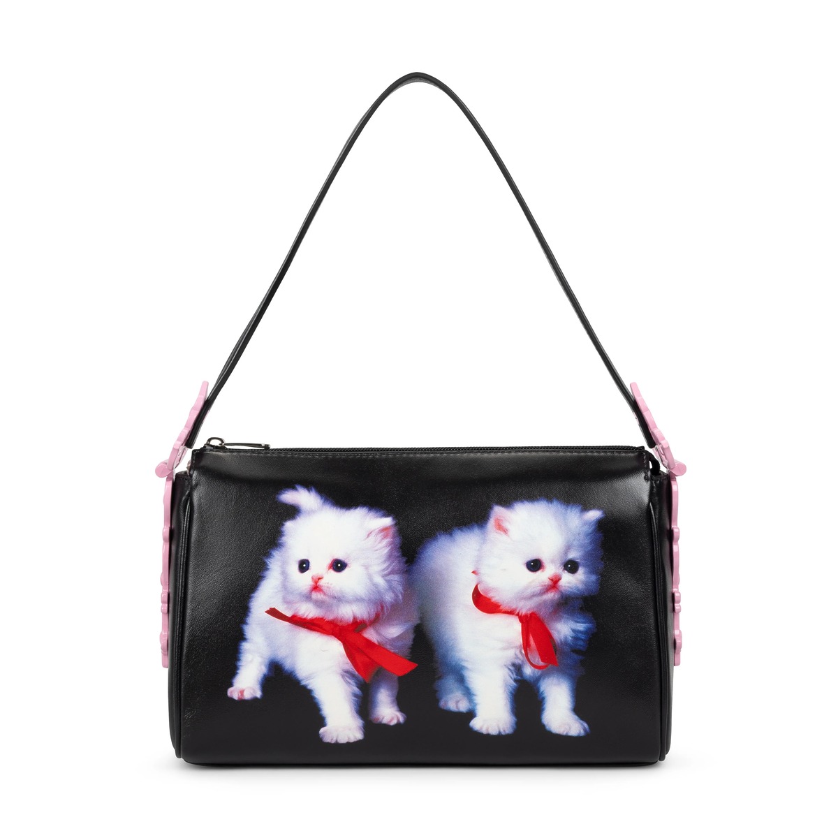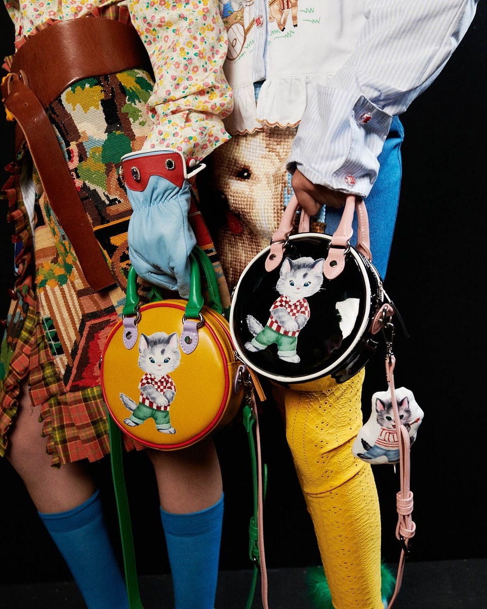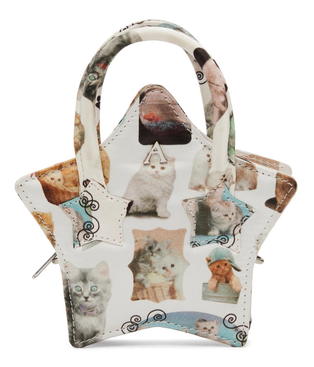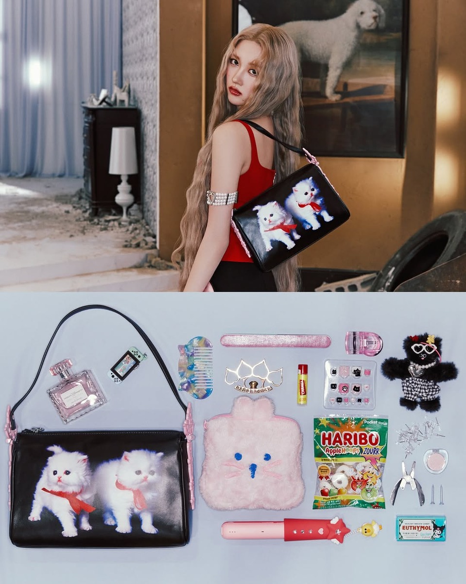 소녀의 가방에는 사실 무시무시한 도구가 가득하다?! 파격적인 콘셉트로 컴백한 아이브의 콘셉트 포토에서도 고양이들을 찾아볼 수 있었죠. 가을이 든 가방에는 흰 솜뭉치같은 보송보송한 귀여운 고양이 두 마리가 프린트 되어 있었는데요, 이는 애슐리 윌리엄즈의 제품입니다. 키치하고 독특한 무드를 전개하는 브랜드로 두아 리파, 뉴진스 등 여러 아티스트들이 애정하는 브랜드죠.
