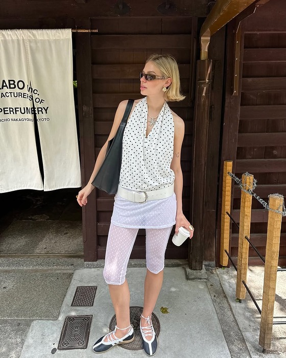 두툼한 청키 스니커즈 대신, 최근 패션 피플들이 주목하는 건 밑창이 납작한 플랫 스니커즈입니다. 심플하면서도 가벼운 실루엣이 스커트와 스웨트 팬츠 모두에 자연스럽게 어울리죠.