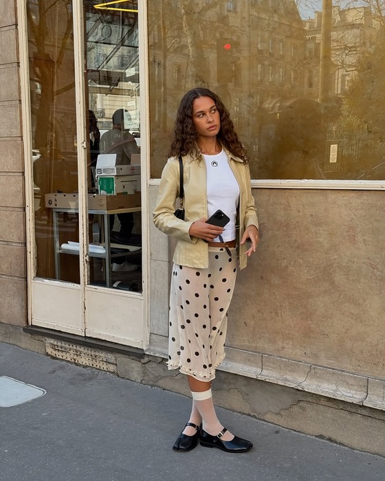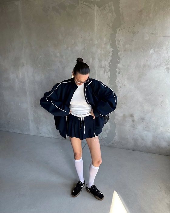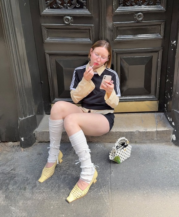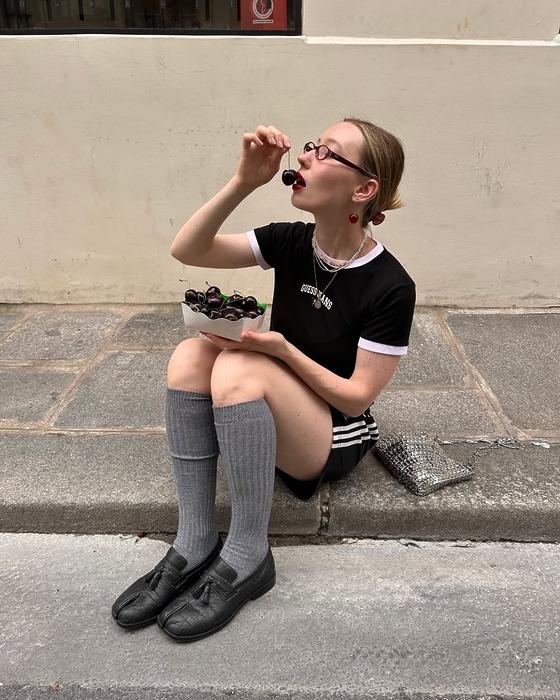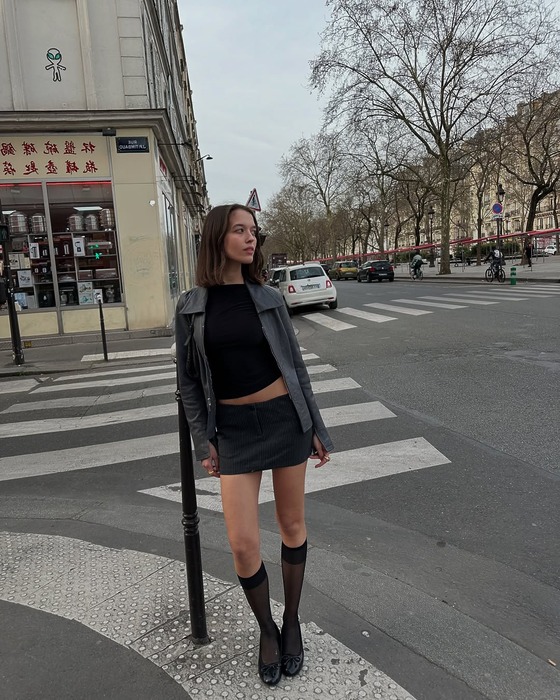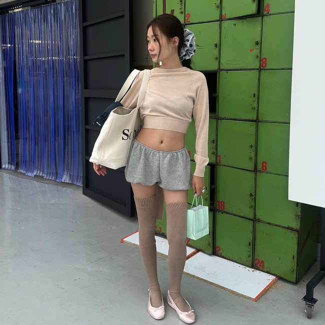 좀 더 도전적인 무드를 원한다면, 인플루언서 박민주처럼 허벅지까지 올라오는 니하이 삭스를 선택해 보세요. 마이크로 쇼츠와 함께하면 요즘 가장 뜨거운 발레코어 무드가 연출됩니다. 이때, 두께감 있는 니트 소재의 니삭스를 선택하면 더 고급스럽고 따뜻한 느낌까지 챙길 수 있죠.