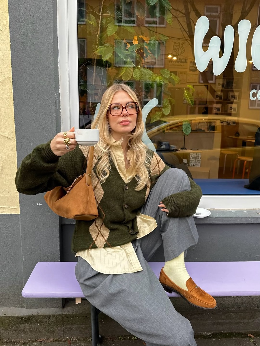안경이 어엿한 패션 액세서리로 자리잡으면서 수많은 브랜드에서 이런 흐름을 반영해 다양한 프레임을 선보이고 있어요. 패 컬러와 소재, 디자인의 폭이 넓어져 안경을 신발이나 가방처럼 취향에 맞게 선택할 수 있게 되었죠. 얼굴을 반쯤 가릴 정도로 큰 렌즈는 이번 시즌에도 유효한 레트로 무드에 꼭 맞는 형태에요. 커다란 렌즈는 스타일을 한층 화려하게 만들어주고, 동시에 빈티지한 느낌도 더해주죠. 벌키한 니트나 체크 패턴이 가미된 클래식한 니트와도 아주 잘 어울려요.