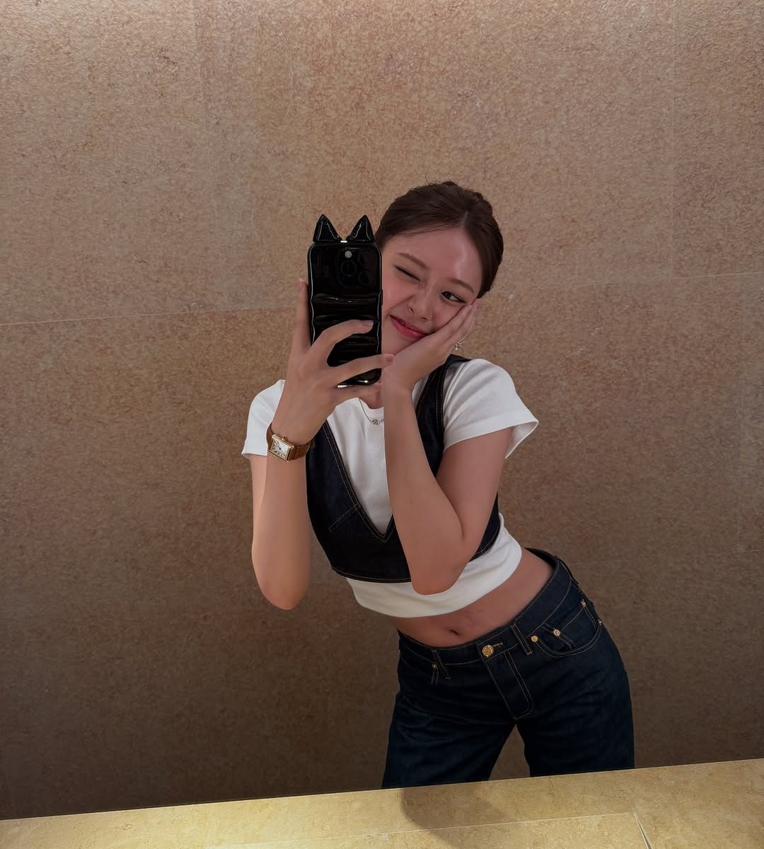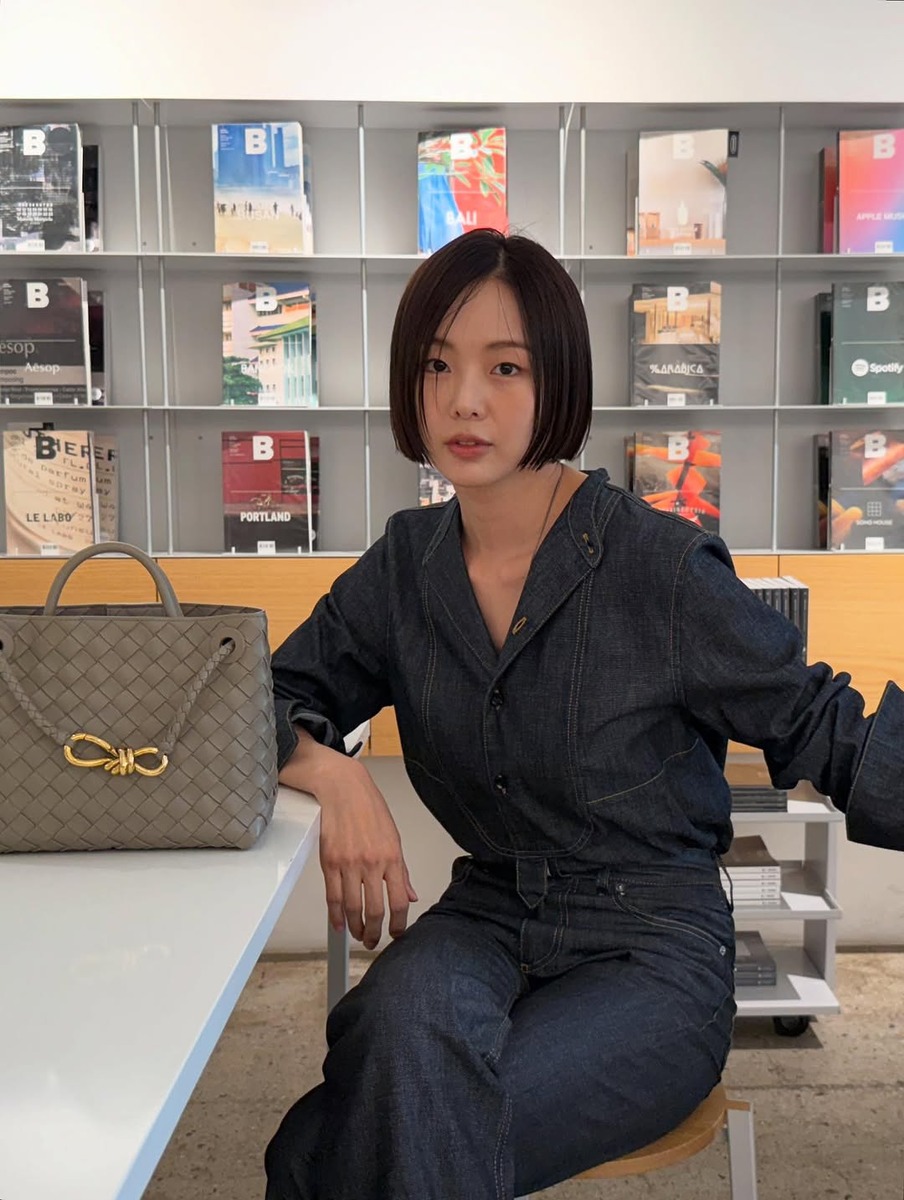 매일 아침 옷장 앞에서 고민하는 시간을 줄이고 싶다면, 데님 셋업을 선택해 보세요. 안유진처럼 인디고 데님을 선택하면 훨씬 단정하고 세련된 무드를 연출할 수 있고, 화이트 티셔츠를 이너로 레이어드하면 청량함이 더해져 답답하지 않아요.