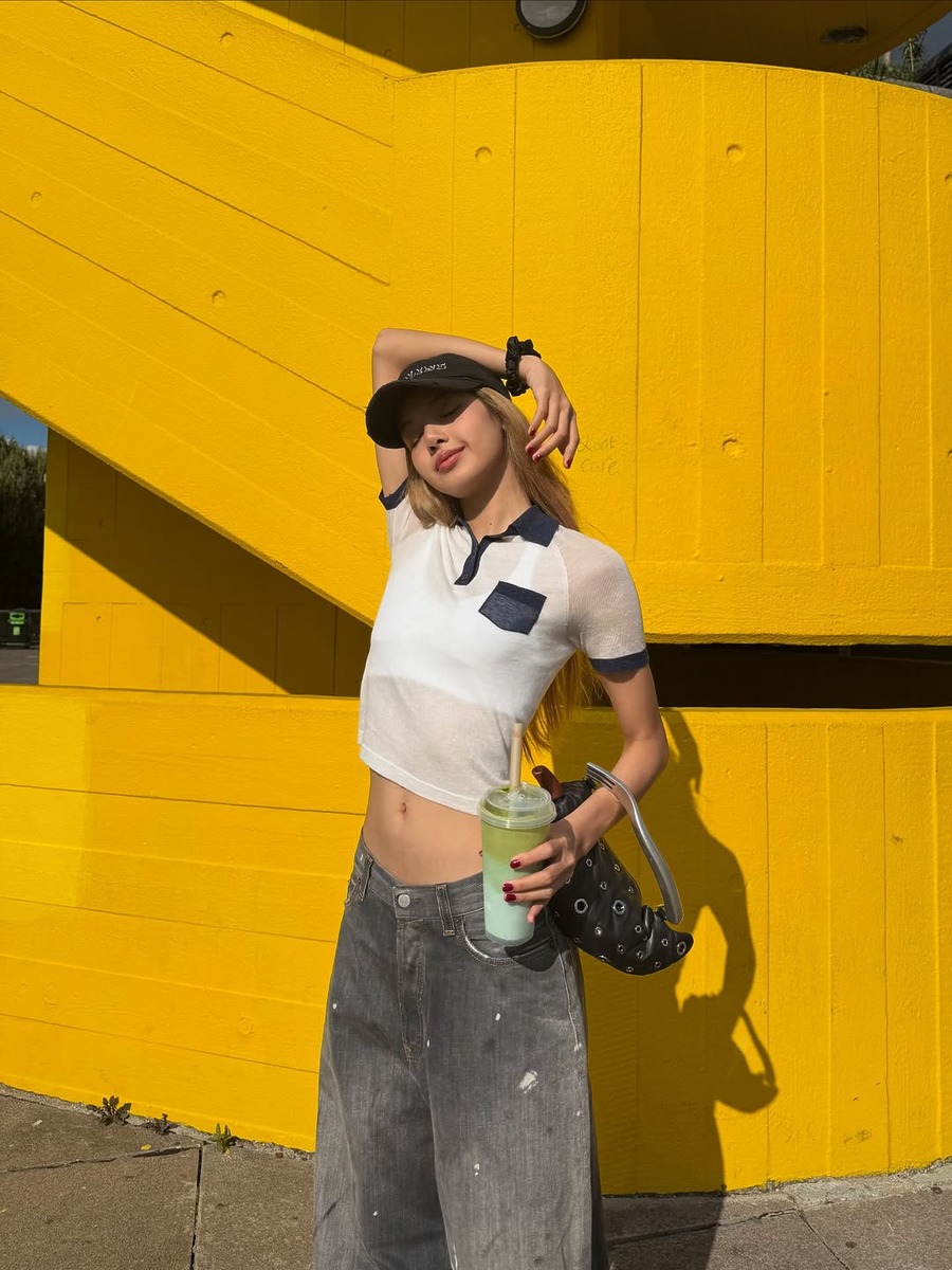 여름엔 밝은 연청이 스타일에 경쾌함을 주었다면, 가을엔 차분한 무드를 담아낸 그레이가 제격이죠. 리사와 지수처럼 루즈한 핏의 그레이 데님 팬츠에 화이트 티셔츠를 매치하면 편안하면서도 시크한 데일리룩이 완성됩니다. 여기에 미니백을 더하면 캐주얼함 속에 세련된 디테일을 살릴 수 있어요.