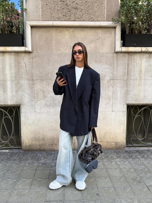 아빠 옷장에서 꺼낸 듯한 오버사이즈 블레이저가 대세로 급부상했어요. 기존의 오버사이즈 재킷보다 2배는 박시한 실루엣이라는 것이 전과 달라진 점이죠. 데님 팬츠와 매치하면 담백하게 시크한 무드가, 미니스커트와 함께하면 의외의 발랄함까지 커버하니 이보다 더 실용적인 가을 아우터가 없습니다. 기억하세요, 재킷의 사이즈와 시크함은 비례합니다.