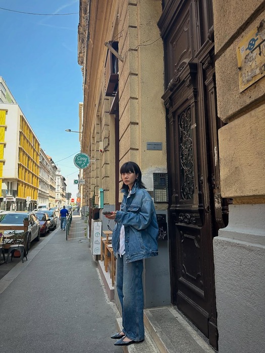 데님 재킷만큼 클래식한 동시에 유행에 민감한 아이템이 또 있을까요? 이번 시즌 데님 재킷 키워드는 루즈함과 밝은 워싱! 배두나와 금새록처럼 박시한 중청 데님 재킷을 선택해야 촌스러움 없는 데님 스타일링이 완성됩니다. 카라를 살짝 세워 무심하게 연출하면 90년대 스트리트 무드를 재해석할 수 있어요.