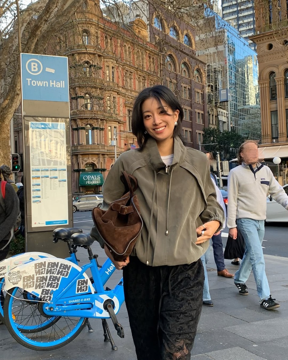 이제는 하나의 스테디 아이템으로 자리 잡은 항공 점퍼. 안유진은 크롭 기장의 깔끔한 블랙 컬러 항공 점퍼에 내추럴 워싱 데님을 매치해 힙걸의 정석을 보여줬어요. 깔끔하게 묶어 올린 머리 역시 잘 어울립니다.