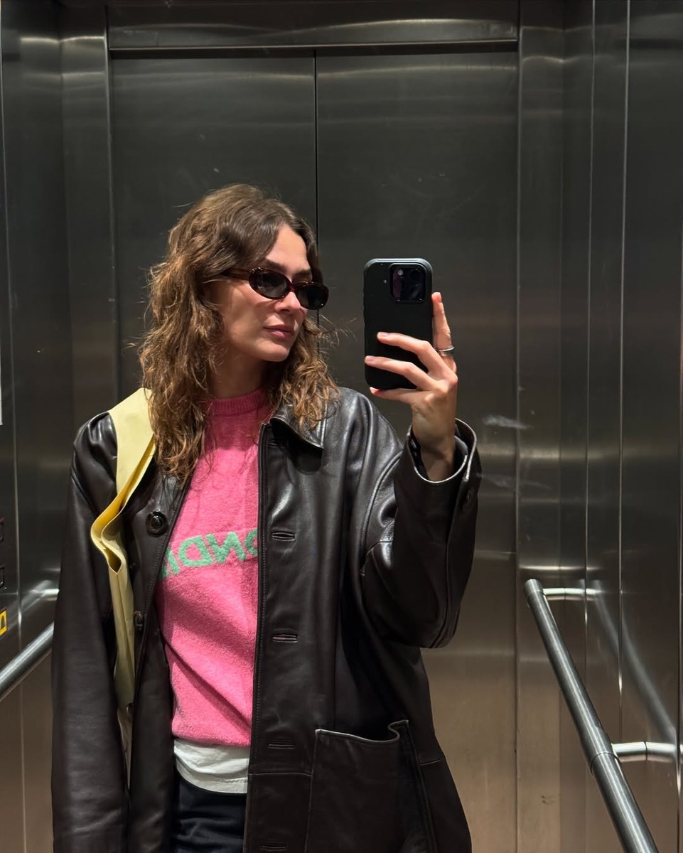 키치한 그래픽 스웨트 셔츠에 핑크 실크 스커트를 매치하면 전혀 예상치 못한 매력이 느껴집니다. 스웨트 셔츠 특유의 캐주얼함과 실크의 유려한 텍스처가 충돌하면서 오히려 독창적인 매력이 생기죠. 여기에 투박한 미들 부츠를 더하면 걸리시하면서도 쿨한 가을 데일리 룩 완성!
