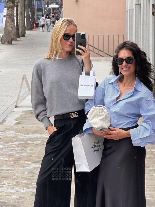스웨트 셔츠라고해서 항상 캐주얼해야 할 필요는 없어요. 두께감이 느껴지는 그레이 스웨트 셔츠에 블랙 슬렉스를 매치하면 미니멀하고 클래식한 오피스 룩이 완성됩니다. 볼드한 액세서리로 포인트를 더하고 로퍼나 블랙 플랫 슈즈처럼 단정한 슈즈를 더하면, 포멀한 자리에도 어울리는 세련된 무드가 연출되죠.