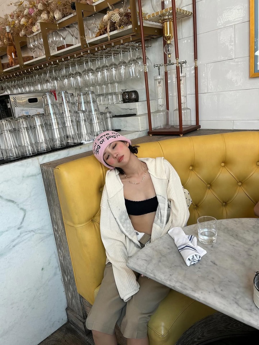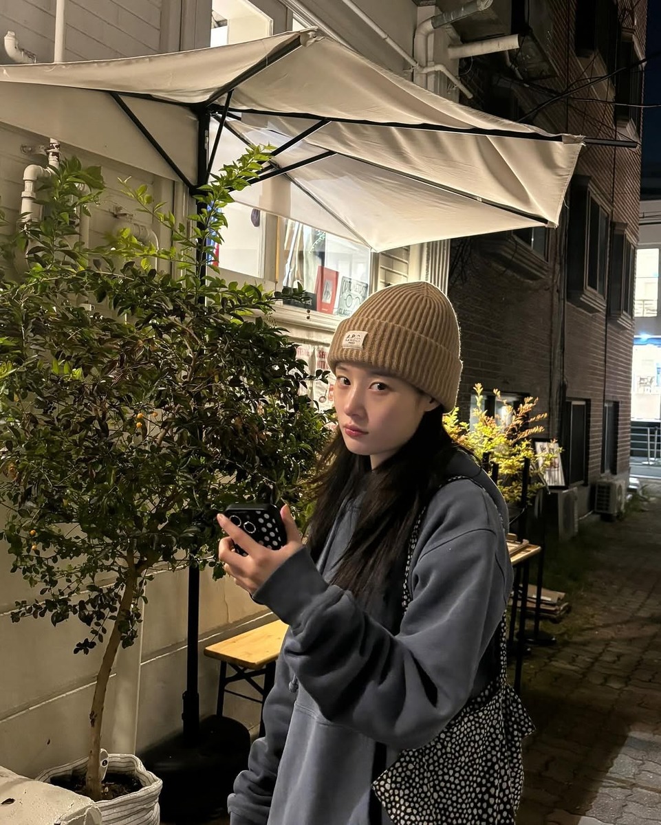 얇은 니트 소재의 비니는 요즘 같은 간절기에 가장 손이 가는 아이템입니다. 캐주얼하게 쓰기 좋고, 레터링 디테일이 들어간 디자인을 선택하면 허전해 보이지 않죠. 편안한 티셔츠와 데님 조합에 비니를 가볍게 얹기만 해도 분위기가 180도 달라져요. 장원영처럼 앞머리를 자연스럽게 내리서 쓰면 사랑스러운 느낌을, 고민시처럼 눈썹까지 푹 눌러쓰면 쿨하게 연출할 수 있어요.