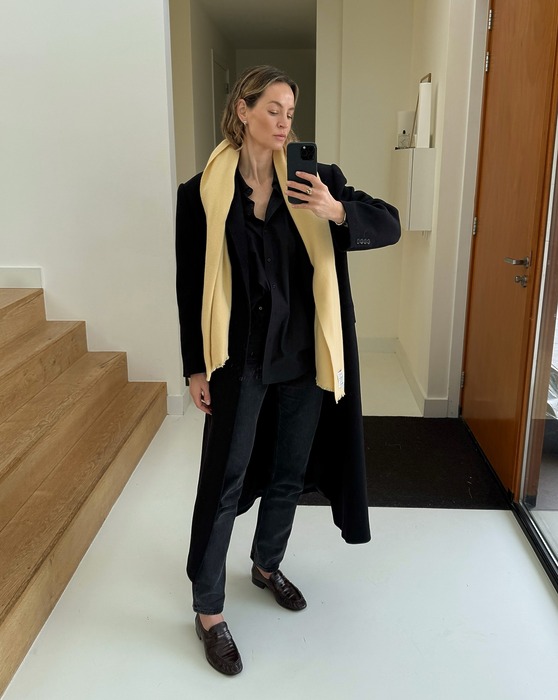 수많은 패피들이 공식처럼 활용하는 카디건 스타일링 방법은 바로 어깨에 두르는 것. 그저 큰 고민 없이도 그레이 수트 위에 옐로 컬러의 밝은 카디건을 툭 걸치니 캐주얼한 느낌이 확실히 살아나죠. 가을, 겨울 소재의 아우터 위에 카디건을 걸치려면 어느 정도 두께가 있는 아이템으로 선택하세요! 어두운 계열의 옷들이 많은 겨울에는 옐로나 밝은 아이보리 컬러의 카디건이 멋스럽죠. 겨울 머플러 고를 때를 떠올려 보세요.