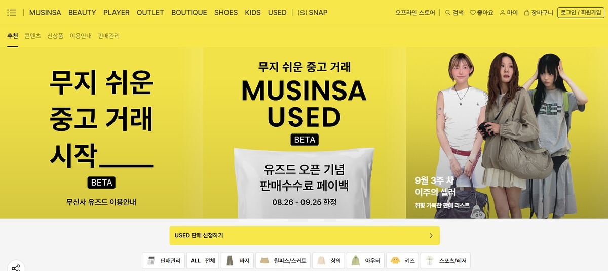 사는 것만큼 파는 일도 편해졌는데요. 론칭 한 지 2주 만에 판매자 수 1만 명, 입고 물량은 6만점을 기록한 무신사유즈드가 대표적입니다. 무신사 입점 여부와 상관 없이 수거부터 세탁, 촬영, 배송까지 직접 관리해 개인 간 거래에서 발생하는 번거로움을 줄여 좋은 반응을 얻고 있습니다.