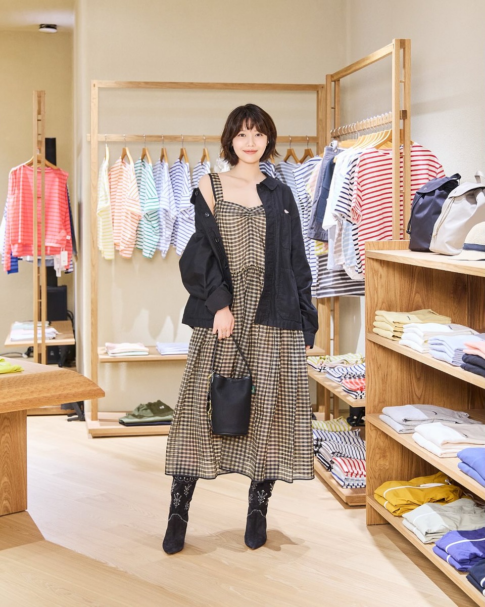 혹은 최수영처럼 현실적인 접근도 가능하죠. 체크무늬 롱 원피스에 블랙 웨스턴 부츠를 더하면 사랑스러우면서도 세련된 무드가 완성됩니다. 특히 원피스 밑단이 부츠를 살짝 덮으면 더욱 길고 우아한 실루엣을 만들 수 있습니다.