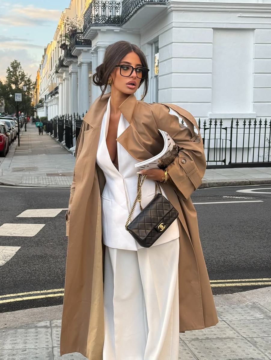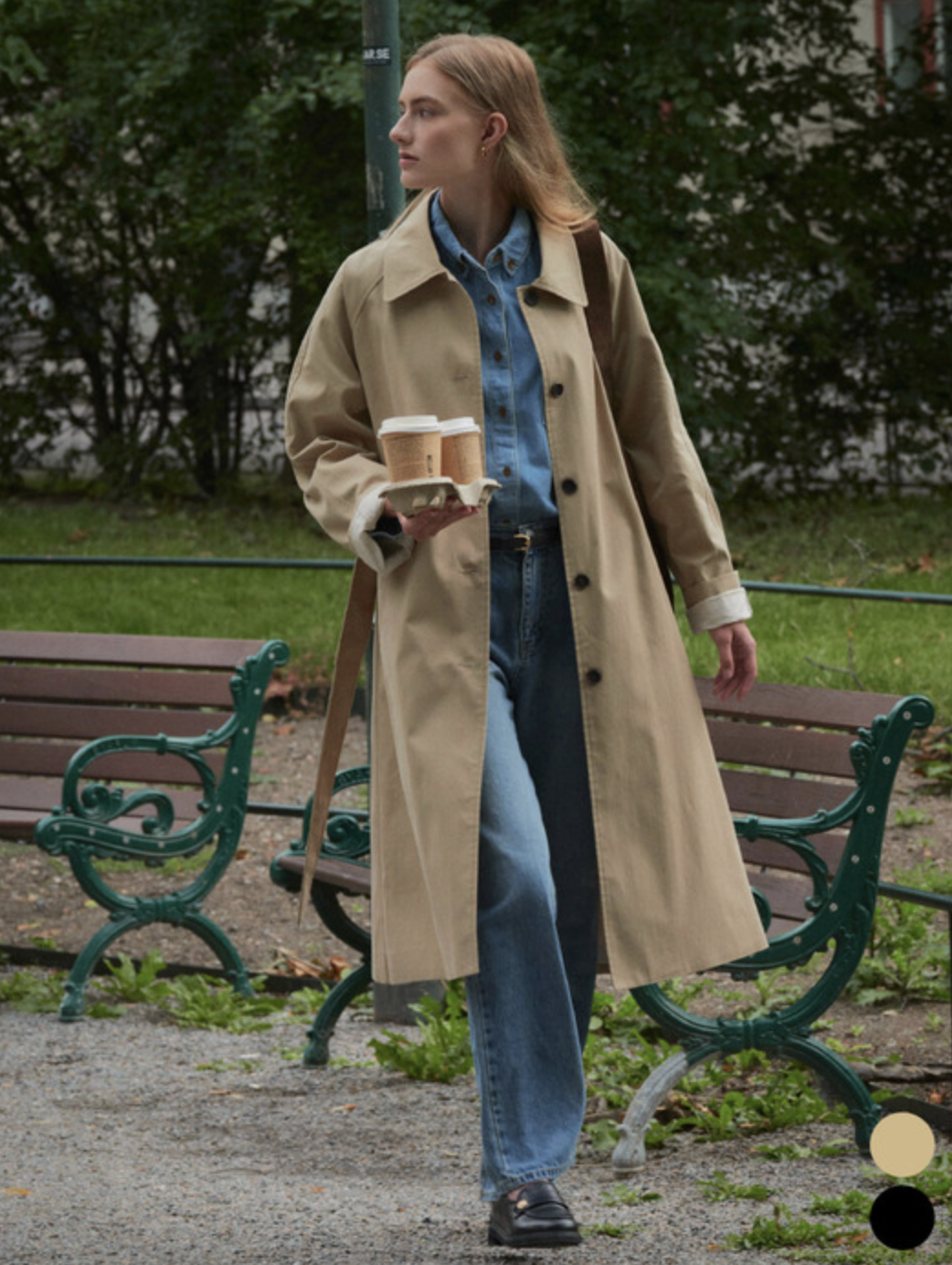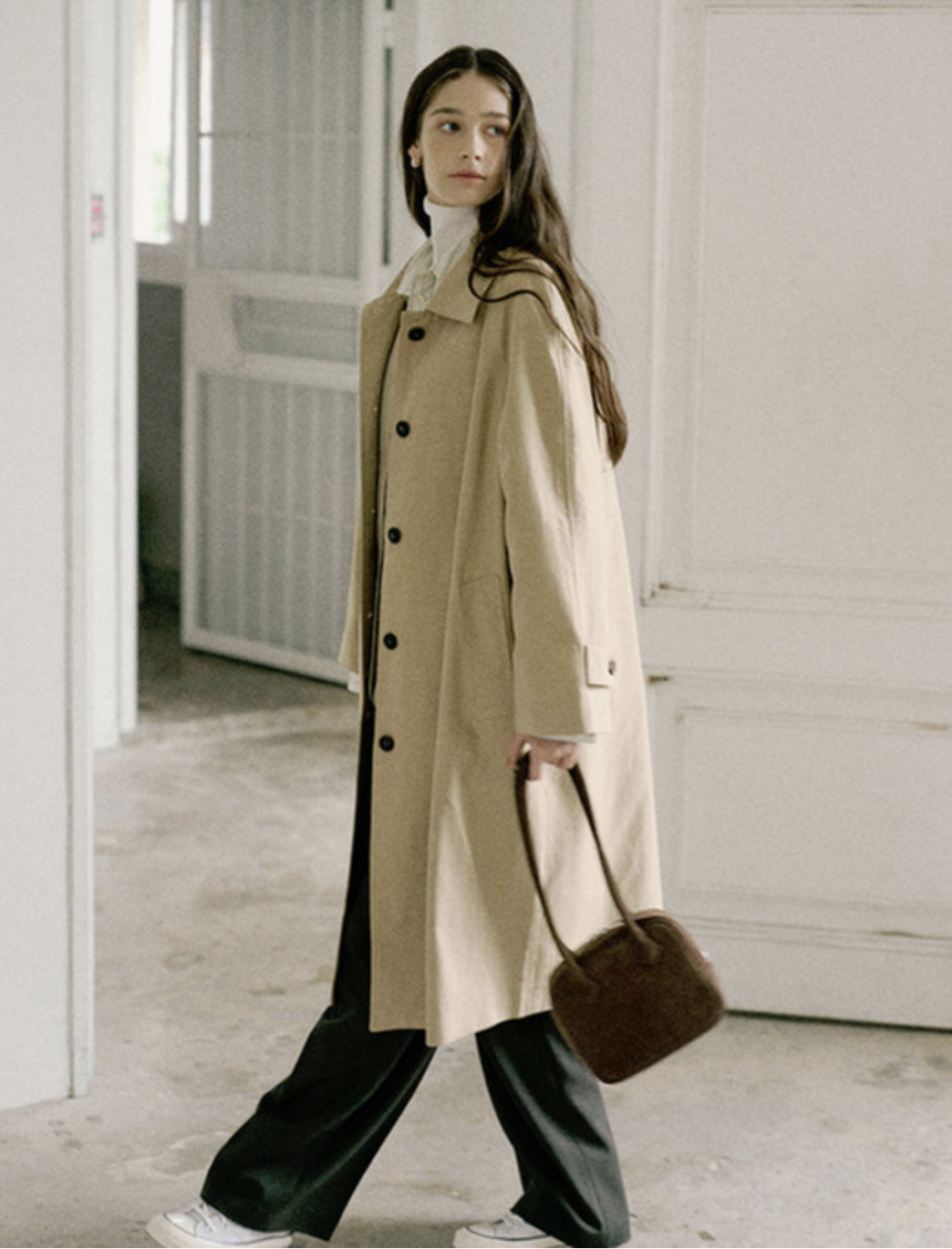 트렌치 코트의 매력은 독보적인 클래식함에 있어요. 트렌드에 발맞춰 디테일이 조금씩 변하기는 하지만 허리 벨트, 견장, 소매 스트랩 등의 디테일은 늘 존재하죠. 이런 디테일들이 모여 트렌치 코트 특유의 클래식한 매력을 발산해요. 베이지 컬러가 대표적이지만 블랙, 네이비, 카키 등 다양한 컬러로도 선보여지고요. 스포티한 에슬레저 룩부터 깜찍한 미니 스커트까지 어떤 아웃핏과도 이질감 없이 멋진 조화를 이루는 것 또한 트렌치 코트의 강점이에요. 신발 또한 두루 잘 어울리죠. 앞 코가 뾰족한 부츠나 힐, 편안한 스니커즈, 단정한 로퍼 등 트렌치 코트는 신발을 가리지 않아요. 트렌드 혹은 스타일에 국한되지 않고 여기저기 활용 가능한 아이템이죠.