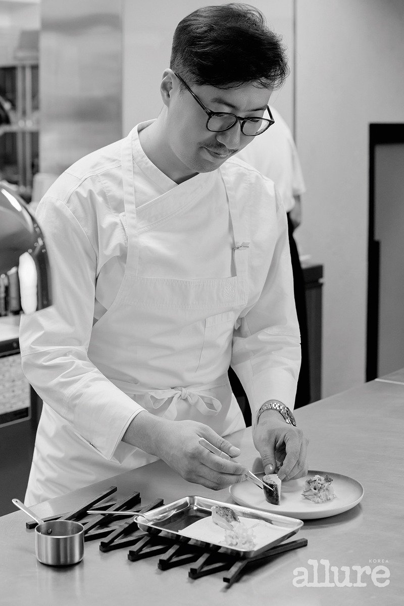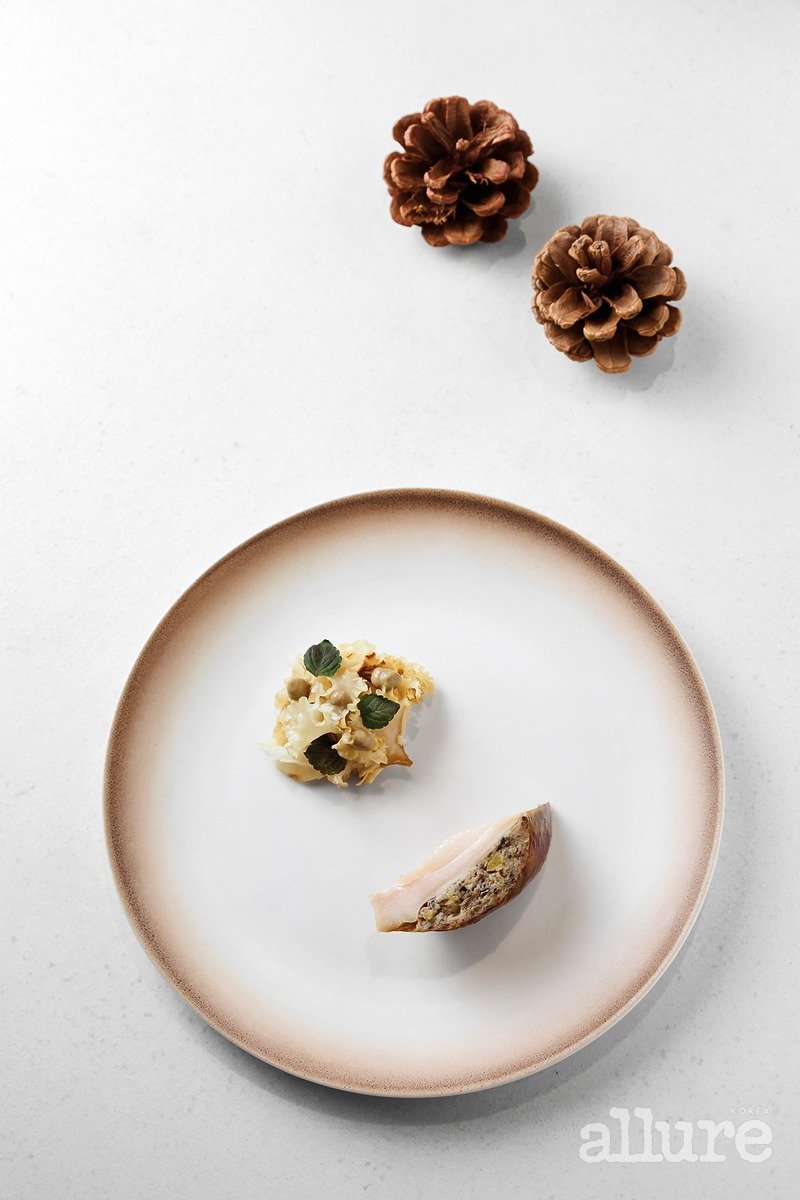 “사실 가을 메뉴를 다 짰는데, 여전히 기온이 높아서 아직 내놓지 못했어요. 보통 9월 1일에는 시작했는데, 올해는 9월 15일 정도부터 할 거 같아요. 재료는 기후의 영향을 많이 받아요. 그런데 이때쯤이면 여름 재료도 힘을 잃기 시작하거든요. 여름 채소는 햇빛을 많이 받아야 단맛이 나요.” 새로운 계절은 무엇으로 채워질까. “그중 하나는 송이버섯이 될 거예요. 아버지와의 추억이 담겨 있죠. 안동에 송이버섯이 많았고, 가을이 되면 아버지께서 송이를 은박지에 싸서 가스레인지에 구워주시곤 했어요. 그걸 숯으로 구현해서 플레이팅할 겁니다.” 가을 그리고 겨울. 엄태준 셰프는 다가올 겨울이 두렵지 않다. “해산물이 맛있어지는 겨울은 제가 제일 좋아하는 계절입니다.” 고요한 소나무의 숲처럼, 솔밤의 시간도 그렇게 흐른다.