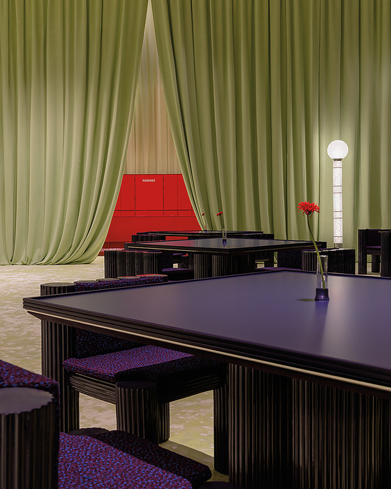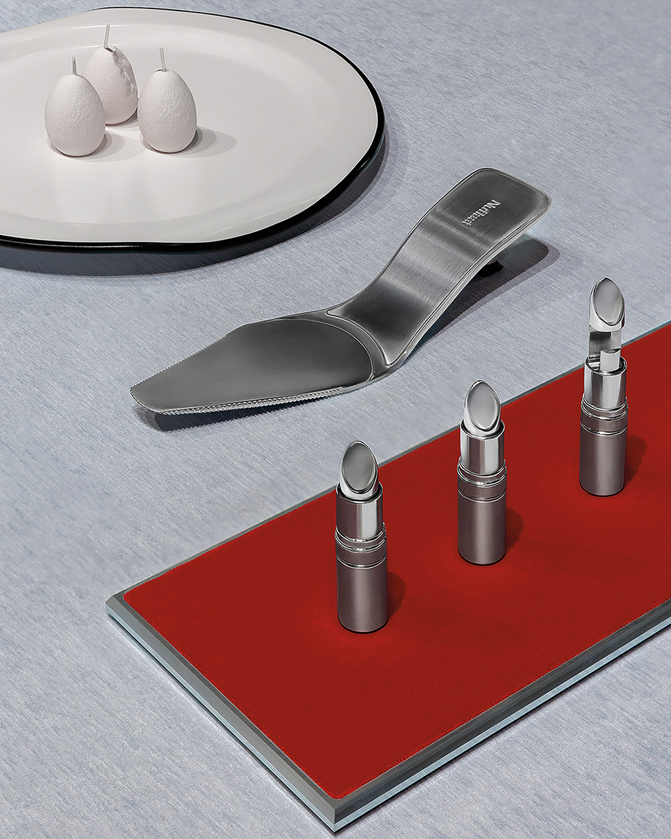 특히 하우스 노웨어 서울에서는 아이아이컴바인드가 새롭게 전개하는 브랜드에 주목할 것. 기존에 선보이던 독특한 형상의 디저트는 물론, 티하우스의 영역으로까지 브랜드를 확장한 ‘누데이크 티하우스’에서는 향긋한 블렌딩 티 12종과 시가 모양의 초콜릿, 구두 모양의 갸또 등 그에 어울리는 독특한 디저트를 페어링해 제공한다. 티하우스의 모든 테이블웨어는 아이아이컴바인드의 테이블웨어 브랜드 누플랏의 제품을 활용했다. 네일, 라인, 웨이브, 펜슬 등 식탁에 오르기에는 이질적인 콘셉트의 컬렉션은 하나의 오브제처럼 작용한다.
