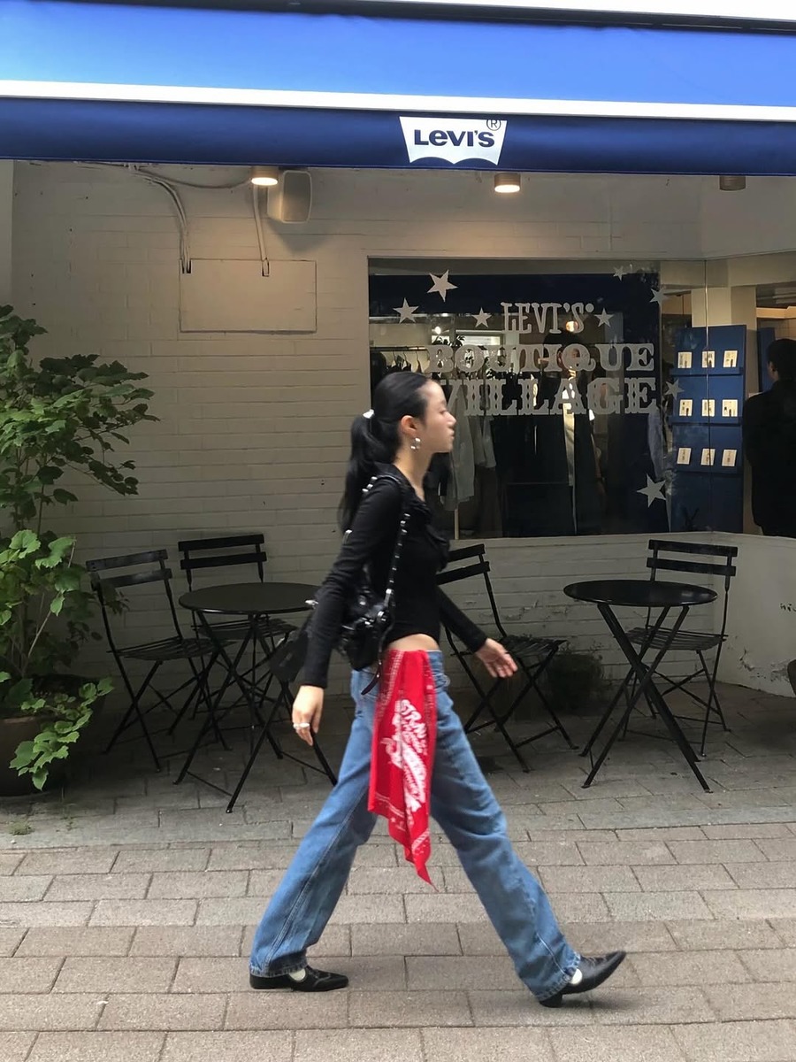 올여름 큰 사랑을 받은 반다나도 허리 꾸미기의 좋은 재료가 될 수 있습니다. 지금껏 반다나를 머리에 두르기만 했다면, 올가을엔 반다나를 허리춤에 무심하게 끼워 보세요. 스트레이트 진에 반다나를 툭 끼워 넣는 순간 룩이 단숨에 웨스턴 무드로 변신합니다. 여기에 웨스턴 부츠까지 더해지면 금상첨화! 매일 입던 청바지가 색다르게 느껴질 거예요.