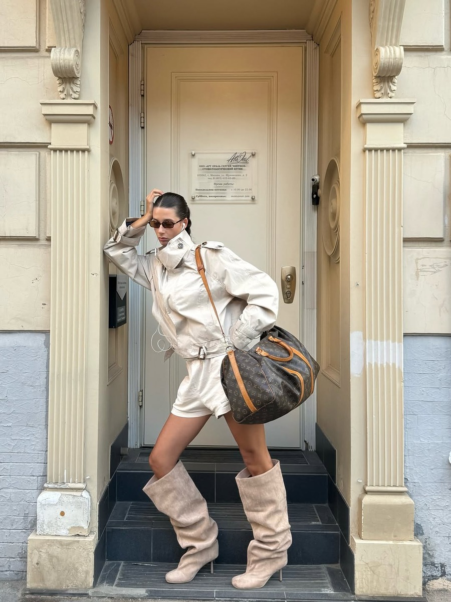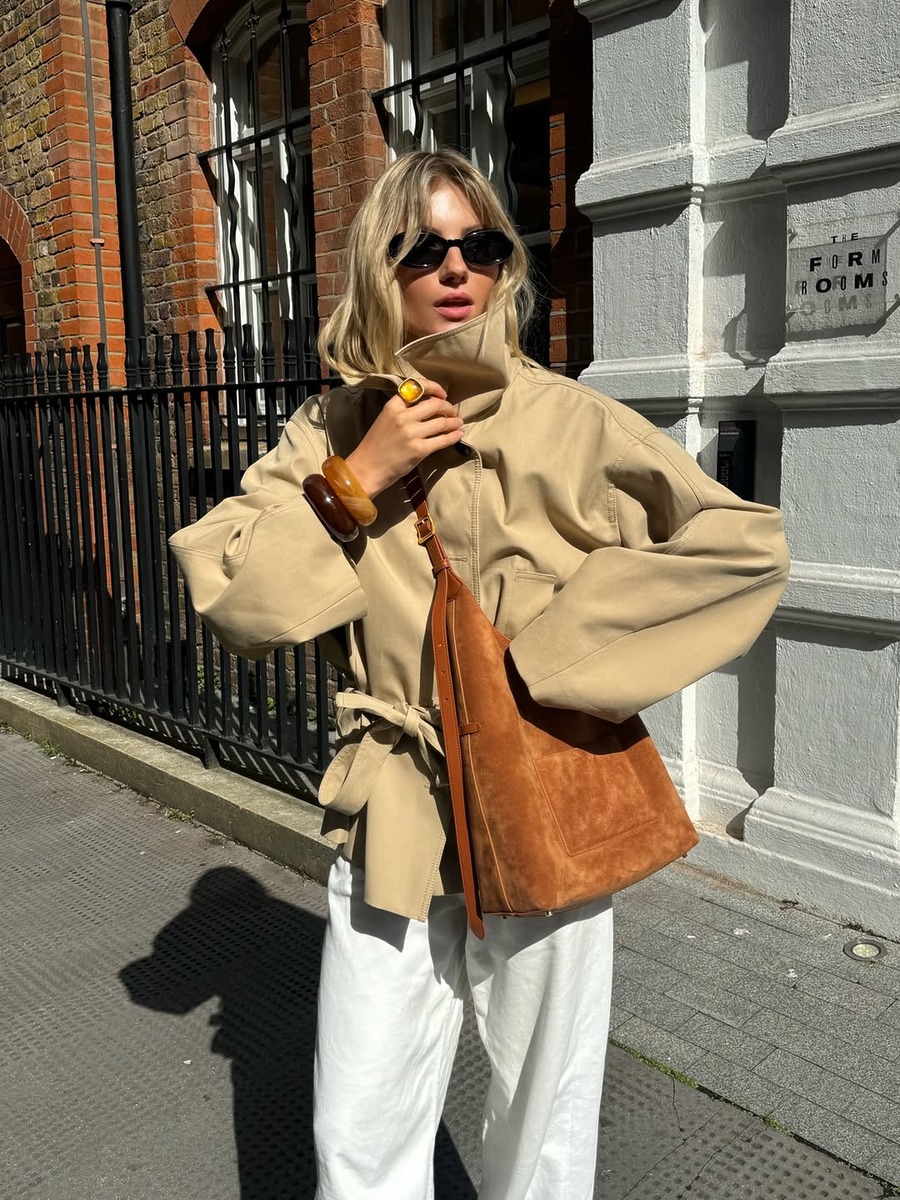이번 시즌 유행 중인 숏 트렌치 재킷을 활용한 룩에서 단연 눈에 띄는 건 재킷에 담긴 하이넥 디테일입니다. 재킷과 비슷한 색감의 하의를 매치해 전체적인 톤을 하나로 연결하면 안정감 있는 실루엣이 완성돼요. 턱끝까지 무심히 채운 단추만으로도 세련된 룩이 만들어지고, 굳이 과한 액세서리를 더하지 않아도 존재감이 살아나죠.