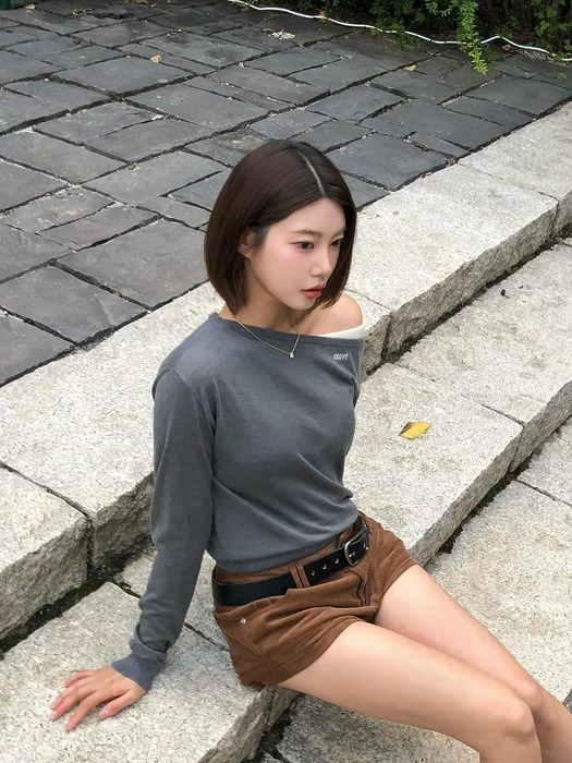다크 그레이 오프숄더 니트는 간결한 생머리와 함께할 때 가장 시크한 매력이 드러납니다. 무채색 니트는 활용도도 뛰어나서 데님 팬츠나 미니스커트 등 어떤 하의와도 잘 어울리죠. 액세서리는 미니멀한 실버 이어링 정도로만 마무리하면 깔끔하면서 세련된 룩을 연출할 수 있어요.