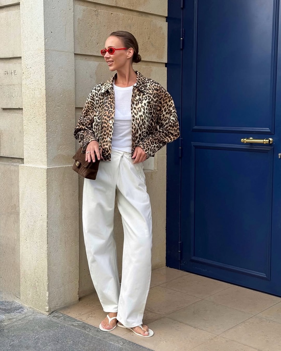 무채색 계열 혹은 포인트가 없는 심플한 옷으로 스타일링 한 뒤, 마지막 한 방이 필요하다면? 바로 레오파드 재킷입니다. 패턴 자체가 주는 야생적이고 강렬한 이미지는 그 어떤 화려한 액세서리나 스타일링보다 드라마틱한 효과를 선사하니깐요. 캐주얼하게 즐겨 입는 화이트나 블랙 팬츠, 혹은 청바지 위에 걸치면 단숨에 세련된 데일리룩으로 변신 가능해요. 여기에 선글라스 하나만 툭 써주면 파워풀한 스타일 완성!